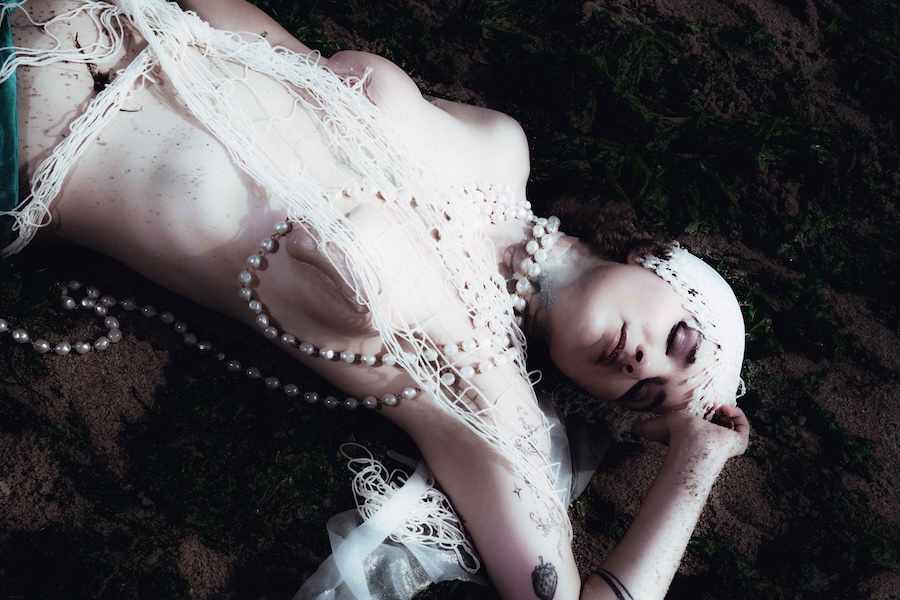 The first scene, Birth of Venus, reimagines the myth through a postwar Hollywood lens, a hyper-glamorous mermaid goddess washed ashore inside a massive paper seashell. The shell itself was over five feet tall, made from chicken wire and layers of papier-mache she built by hand in her backyard. It took a month, mostly because the weather kept undoing her work. There’s something poetic about that: the ocean fighting back against its own image. She created everything for that scene: the pearl headdress, the skirt, the jewellery, except the breast prosthetics and gills, which were by the makeup artist, Sarah. It’s decadent, camp, and painstakingly fragile, like a dream you can hold for a second before it dissolves.
