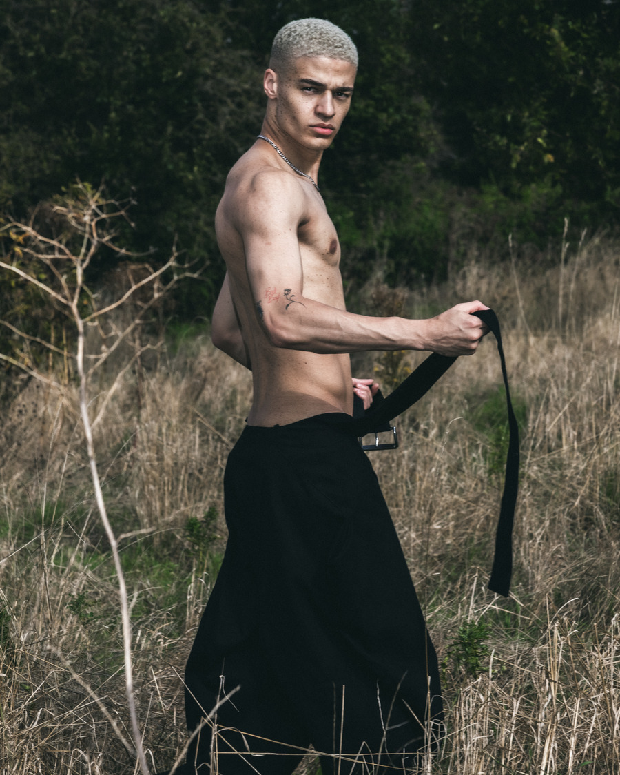 A KALTBLUT exclusive. Photography by Lauren Cremer. The model is ZIKALE. Fashion Brands used are Celeste Yuan, Brooks Brothers, Moss Bros, Boda Skins, Cernucci, and Badlands Studio.