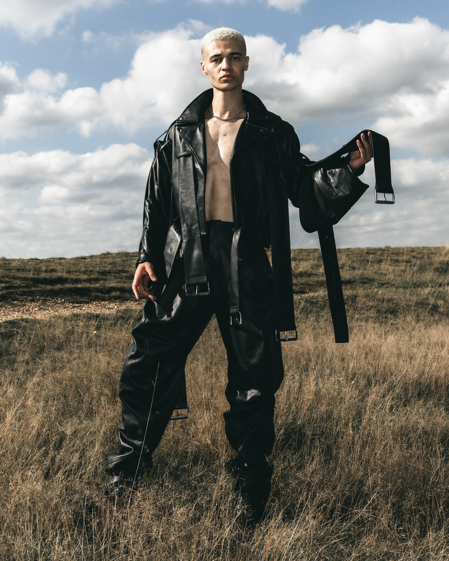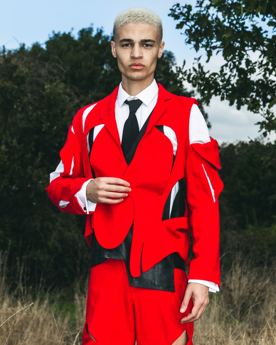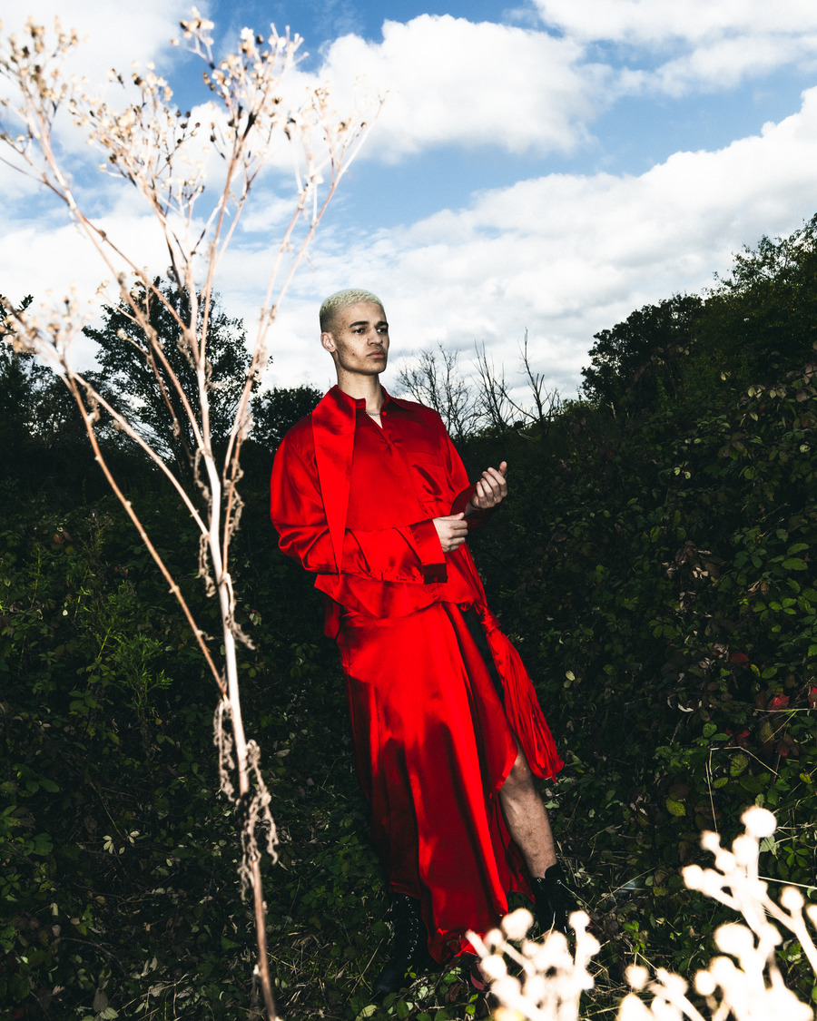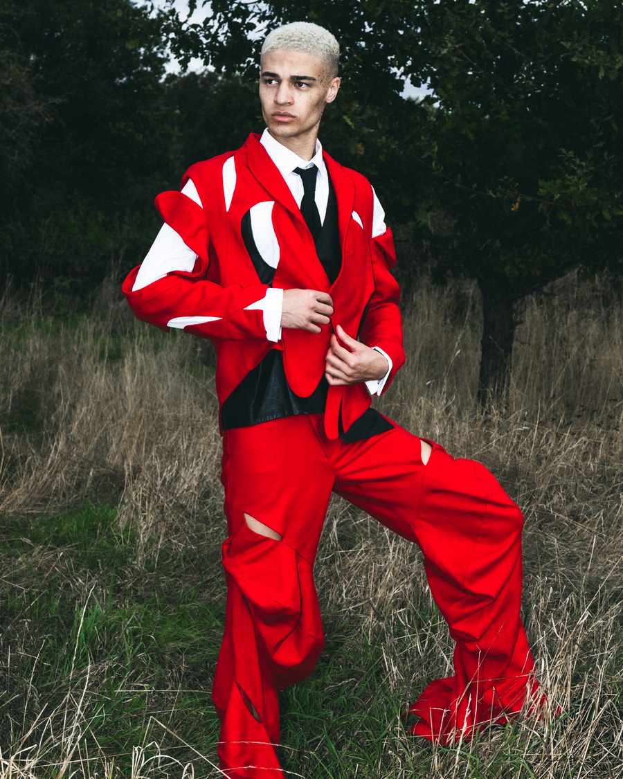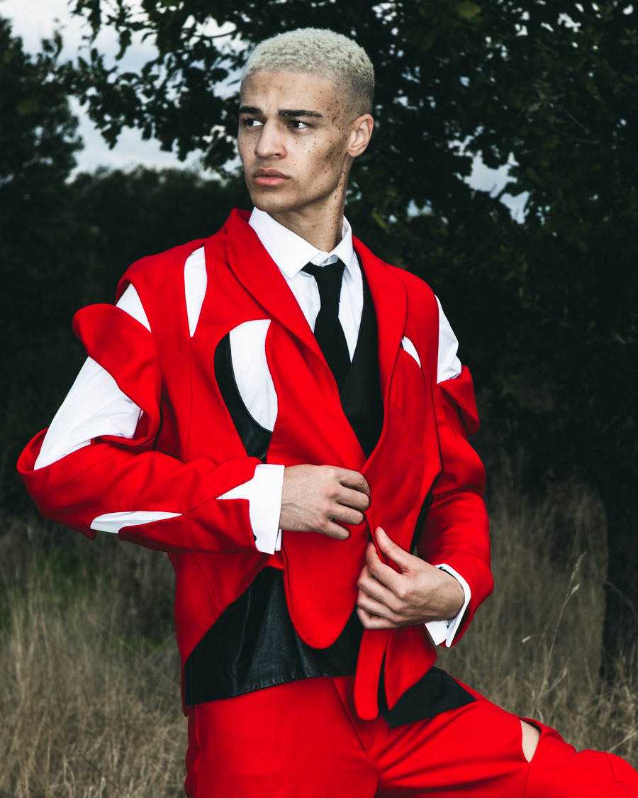 A KALTBLUT exclusive. Photography by Lauren Cremer. The model is ZIKALE. Fashion Brands used are Celeste Yuan, Brooks Brothers, Moss Bros, Boda Skins, Cernucci, and Badlands Studio.