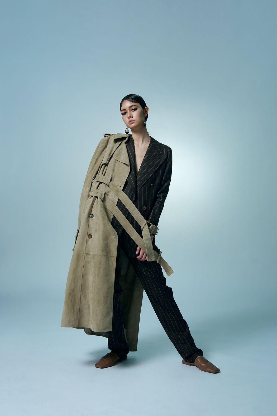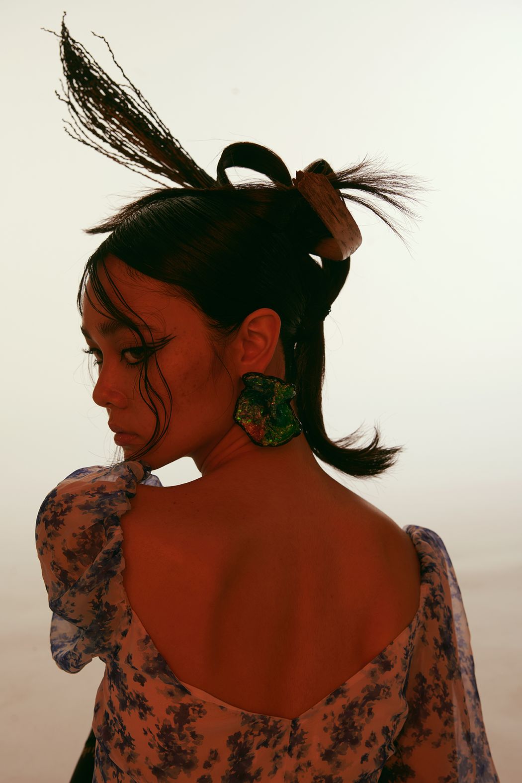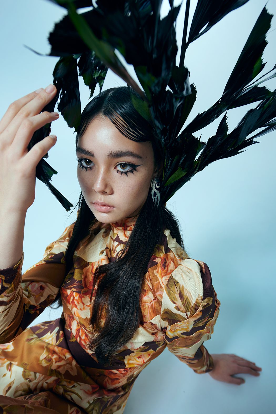 The editorial is inspired by drought plants and spring. We use animals prints & floral patterns to match with different outfits. Also focus on fabric, such as suede & chiffon, to show the layering and styling. In the art direction, we chose dried plants to create the mood & improve the contrasts of textures.