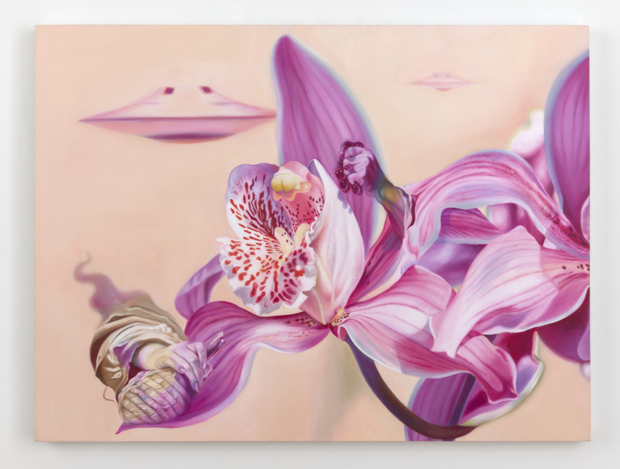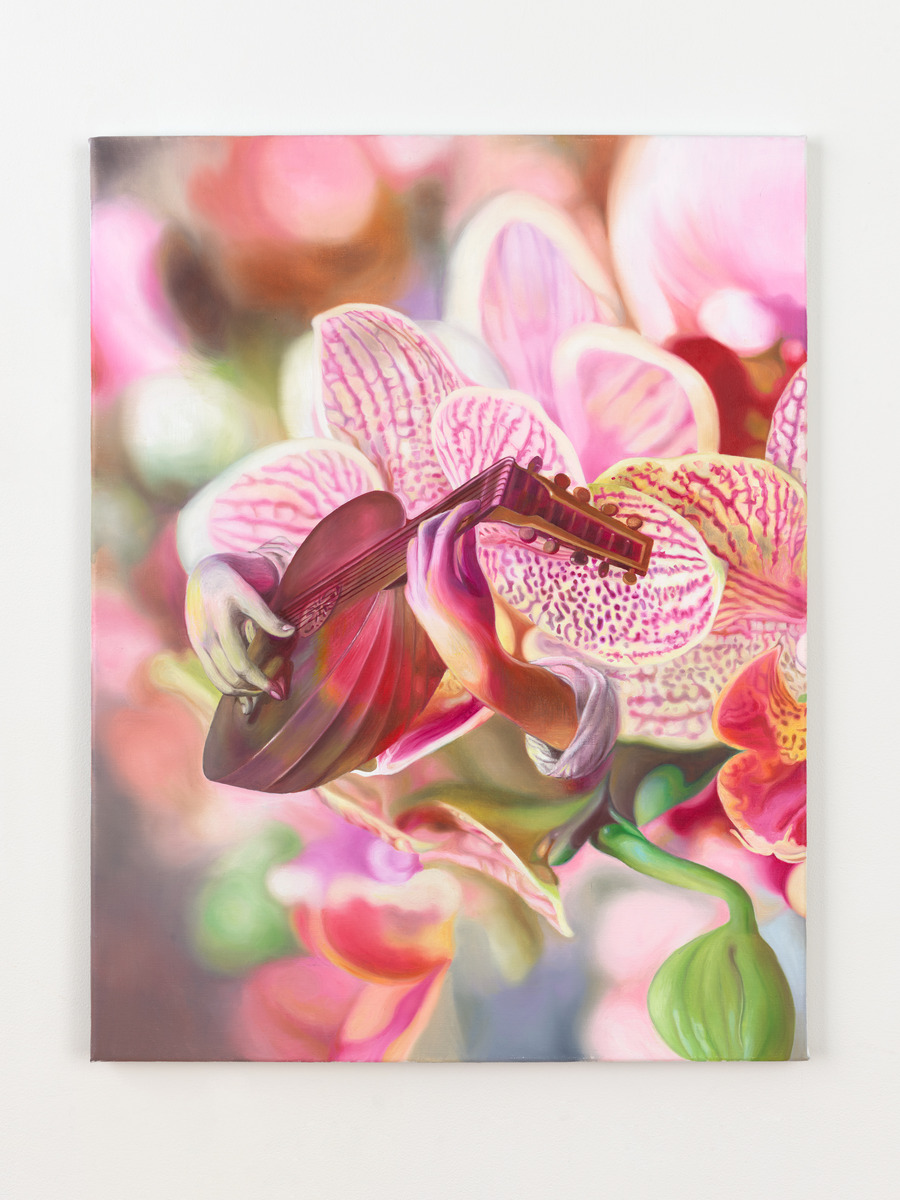 Returning to New York, Pia Dehne presents a series of visual enigmas that twist the conventions of traditional botanical painting. Her artistry melds precision with surreal juxtapositions, creating hyperrealistic portrayals of orchids in full bloom that are both mesmerizing and thought-provoking. But there’s more than meets the eye—upon closer inspection, viewers will discover hidden images interwoven in the floral compositions, including portraits of music legends, sinister hands at work, and nods to Renaissance artistry.