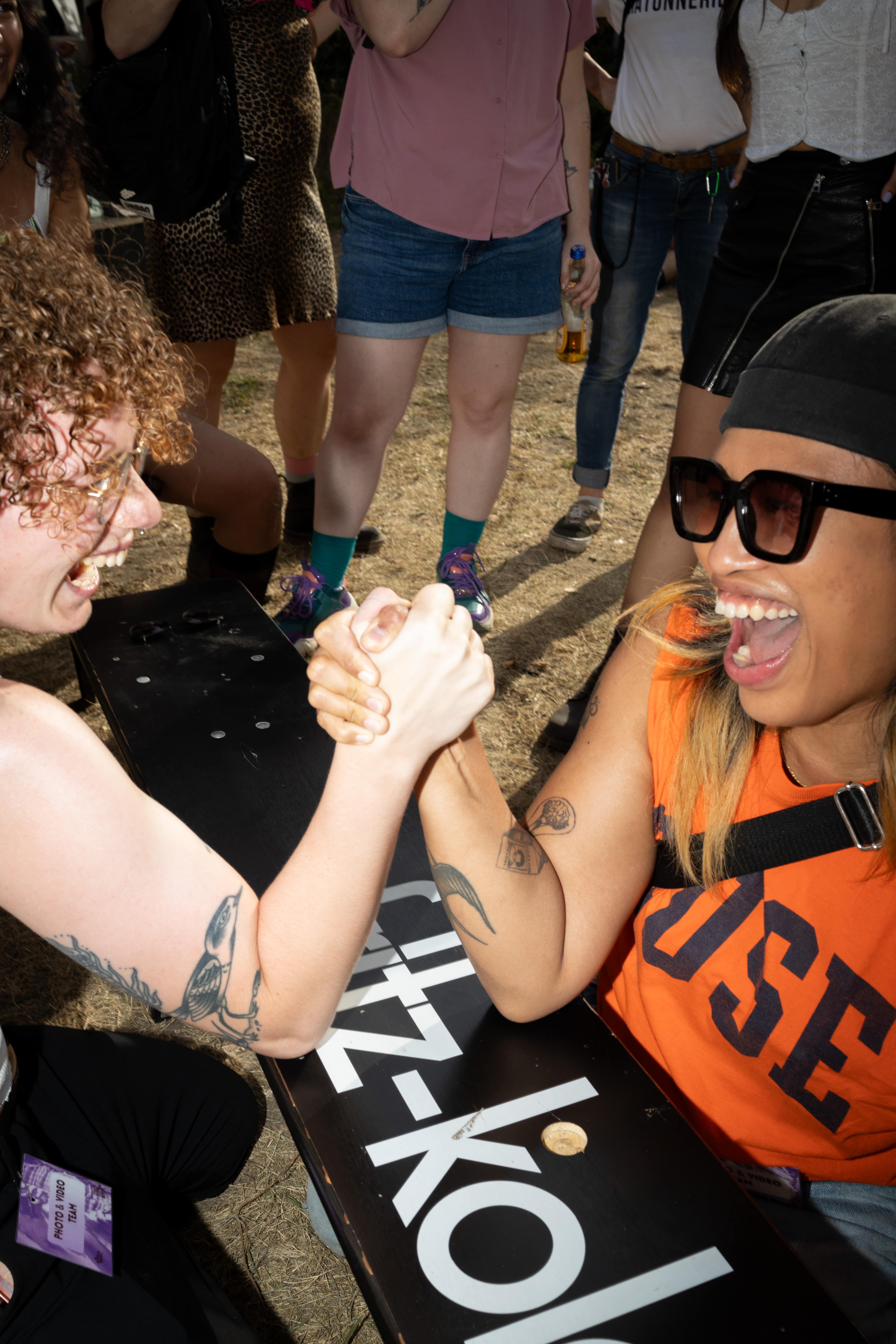 Deny: The Dyke* Festival focuses on connection through daytime activities. Expect artsy workshops, input sessions centering underrepresented queer experiences, exploring diverse landscapes of artisanship in music, fashion, entertainment, a buddy system to welcome those joining on their own. Activities center introverts as much as extroverts. Expect a bit of chaos and a lot of charm. And after two days at the Dyke* Festival, you might leave with the feeling that the world can be pretty cute after all.