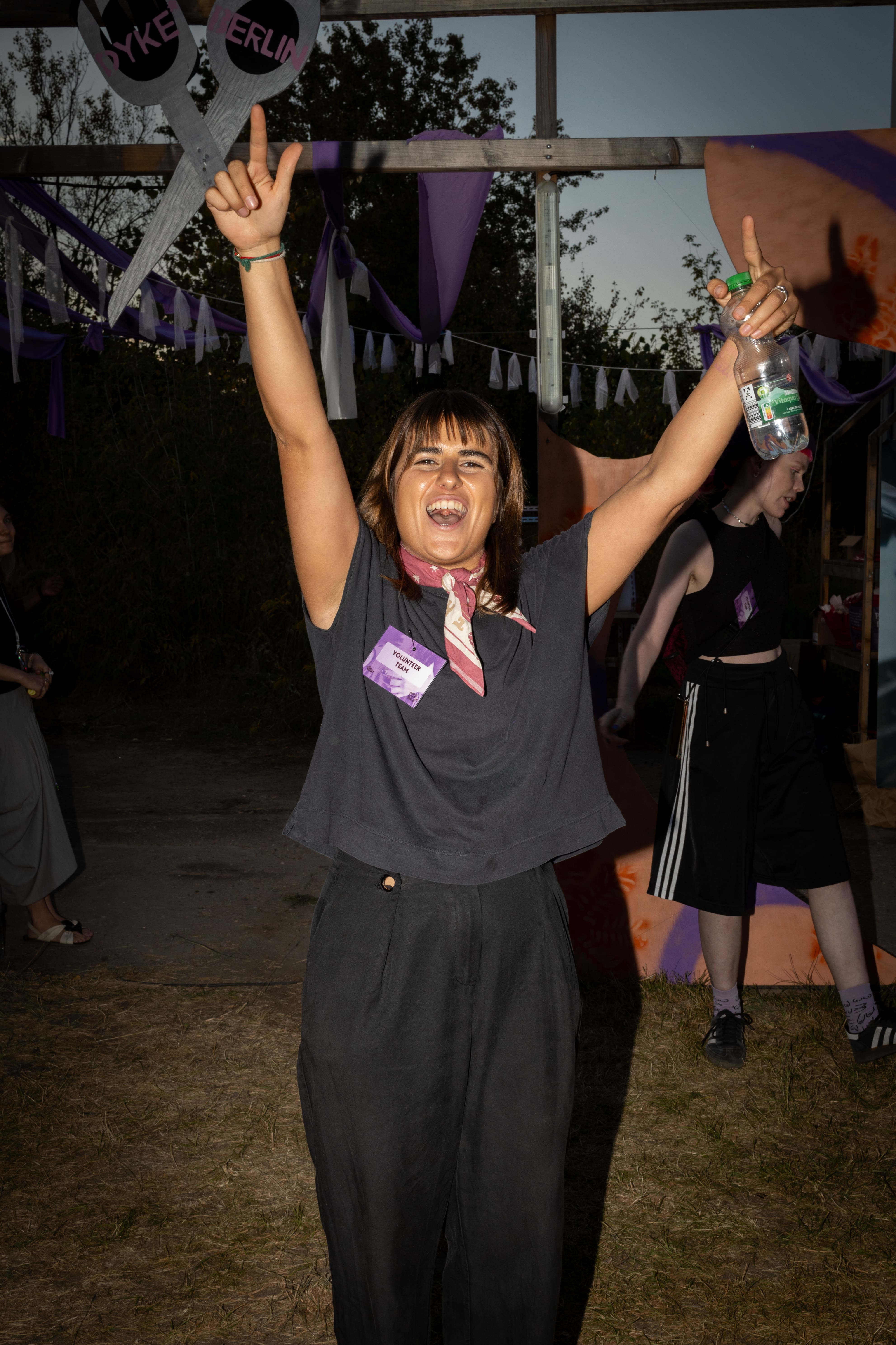 Deny: Our events are all about community and creating a space to feel comfortable. We know how overwhelming it can be to find queer friends, so we create the kind of events we miss ourselves. May it be activities like embroidery, drawing or knitting, photo workshops or movie nights and the occasional party. allesbien events are a great place to get to know new people and connect through our identity as dykes*, long established or just dipping toes in the water. Rumors tell several long lasting friendship groups have formed since the first Dyke* Festival edition. Anyone joining an allesbien event will notice how it feels like a big, warm dyke* family hangout. It gives village vibes in an otherwise so often anonymous big city. And we are just getting started, with the allesbien team expanding, more diverse interests will be covered. In july we will host our very first allesbien football tournament, specifically for the FLINTA* community.