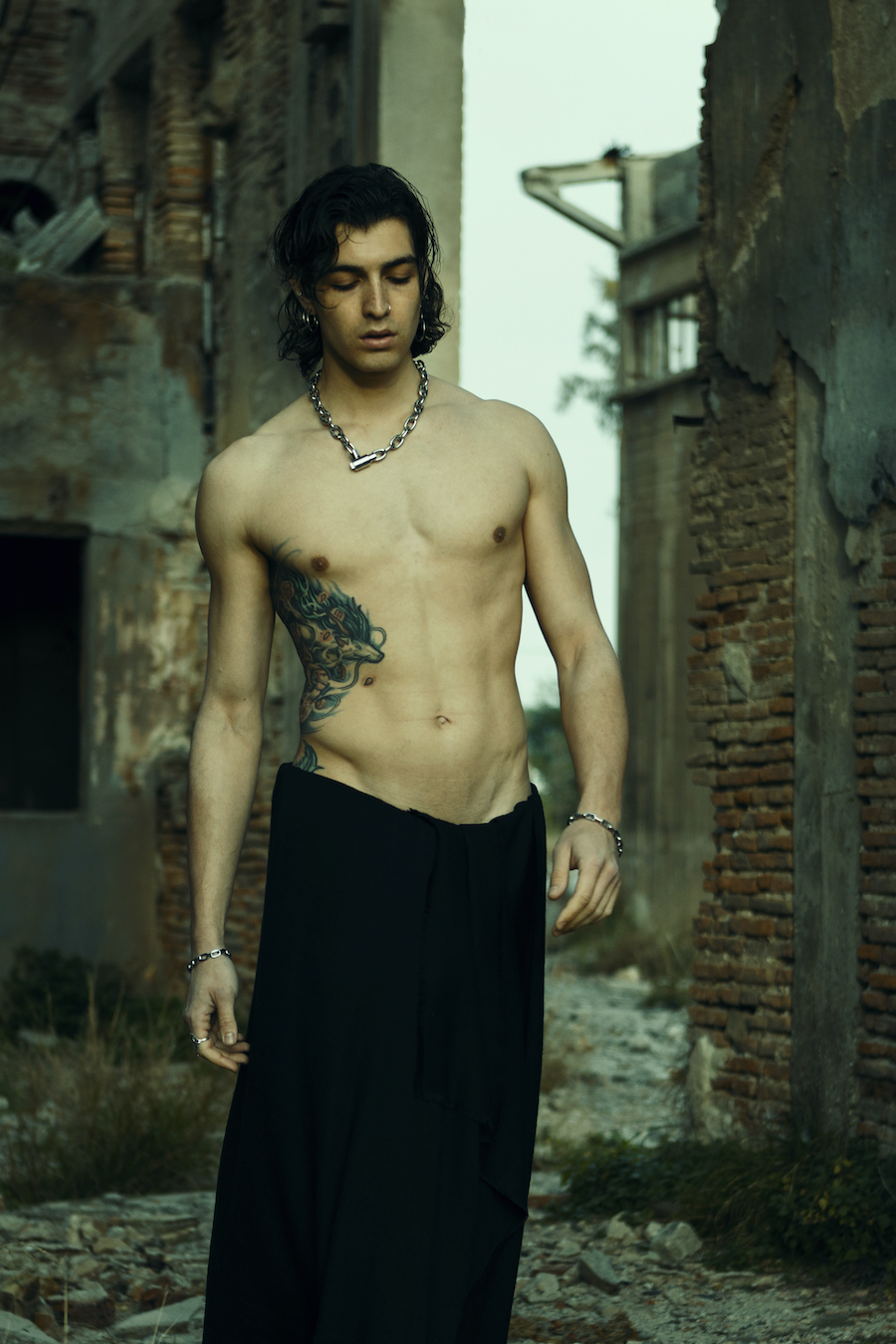 “The main goal of this project is to pair the present with the past in order to create a potential, dystopic future. One future that many predicted and no one prevented. The term “Dystopia” applies to more than just a destroyed scenery. It applies to maintaining world peace, raising awareness for environmental protection and preserving the values that make us human. To achieve that, we combined a post-apocalyptic landscape with modern clothing and jewellery.”