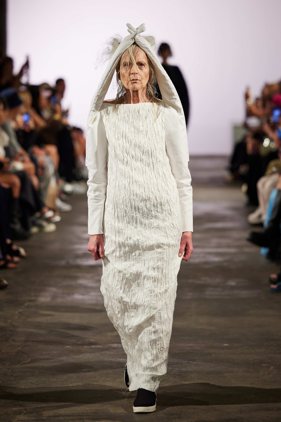 The SS24 color palette by DZHUS is deliberately monochrome, with warm ecru shades adding a touch of elegance and depth. Season after season, Irina Dzhus consciously opts out of color to make way for architectonic and technological experimentation. The DZHUS Spring/Summer line is a display of stunning complex cut concepts, fresh ideas for garment transformation, and upgraded signature styles.