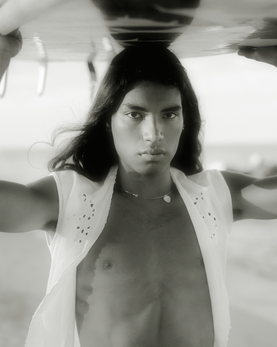 A KALTBLUT exclusive. The model is Yordi Santiago Garavaglia. Photography and concept by Mattia de Benedictis. Video by Glenda Trubiano. Styling by Emanuela Picchini using Levis, Ferrante, Armani Vintage, Vintage dress, Olin Surf, Roberta Ruff. Illustration by Silvan Borer.