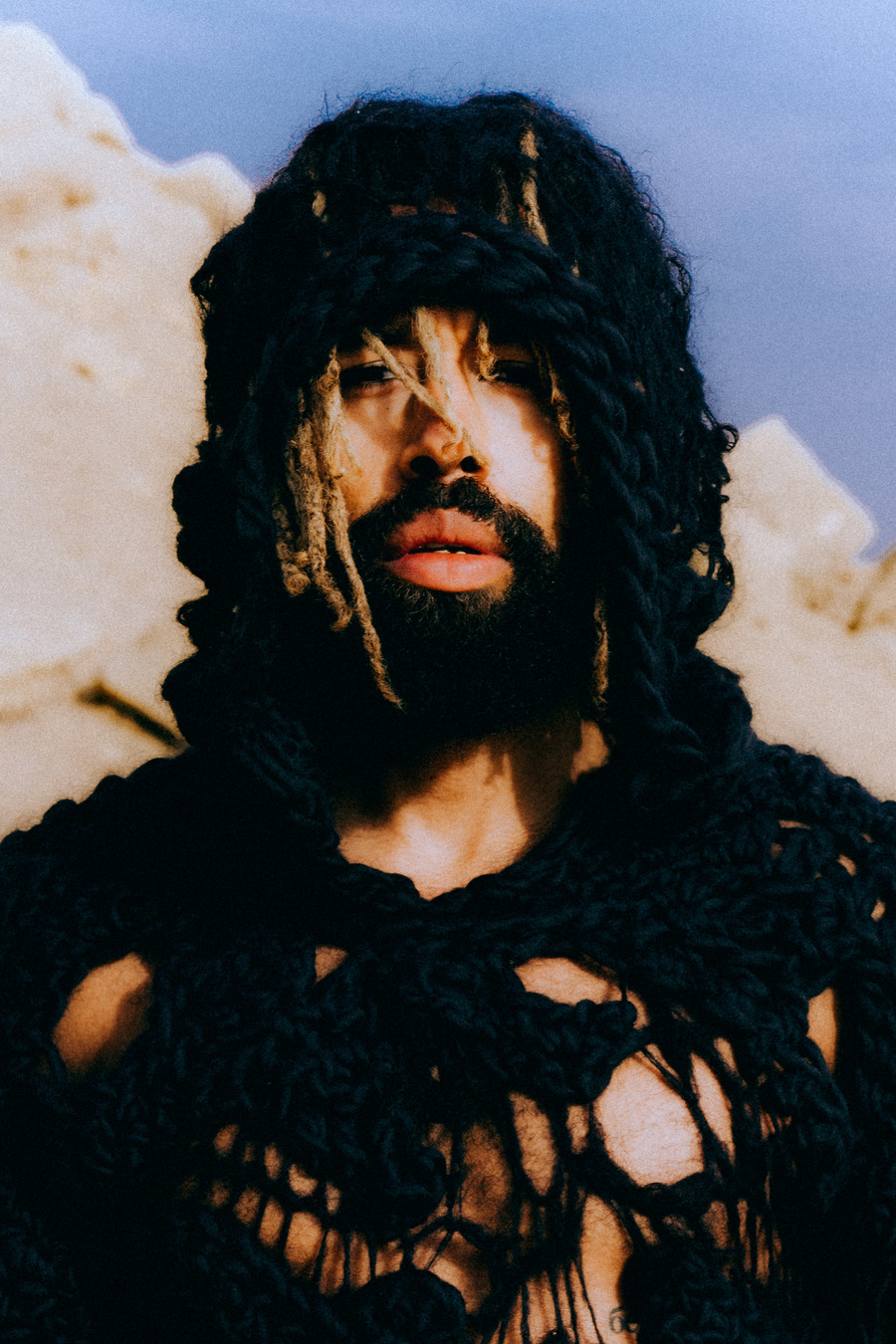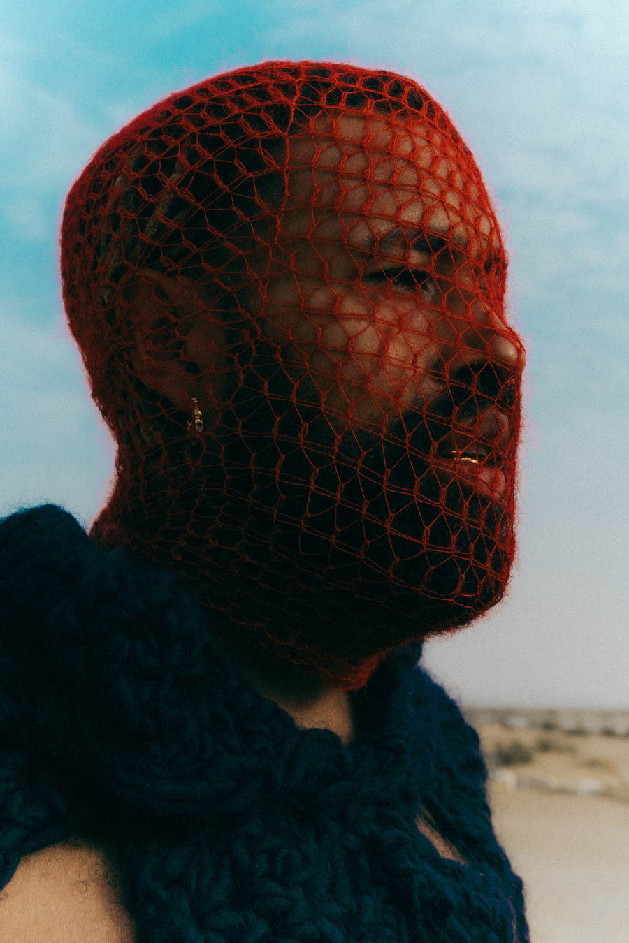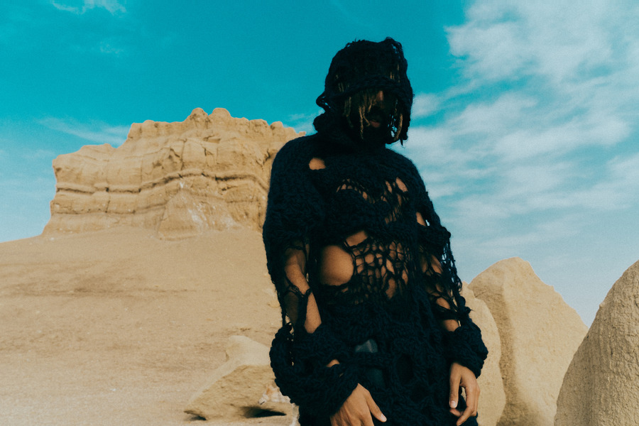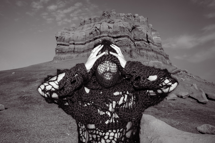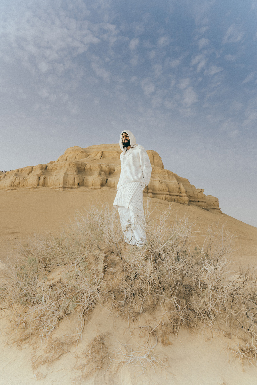 A KALTBLUT exclusive. In a remarkable artistic fusion, Adesse, the renowned German singer, joined forces with Mohsen Othman (Le Mosen), an esteemed Egyptian photographer and art director based in Paris, amidst the picturesque desert of Fayoum, Egypt. This unique collaboration also featured the creative genius of Lara Severa, a self-made independent female fashion designer from Berlin, known for her intricate hand-knitted pieces and previous work experience with Ye, formerly Kanye West.