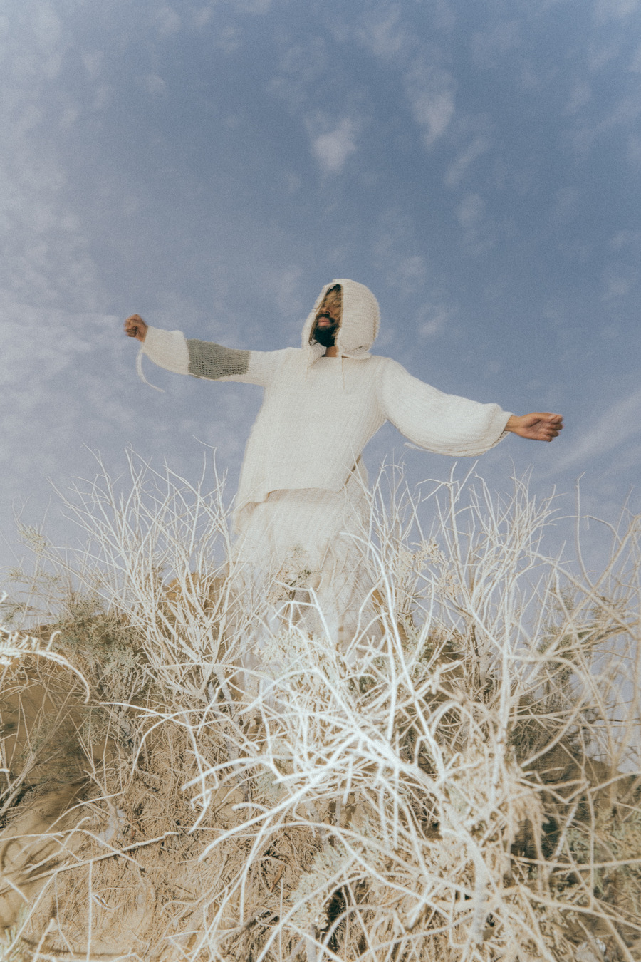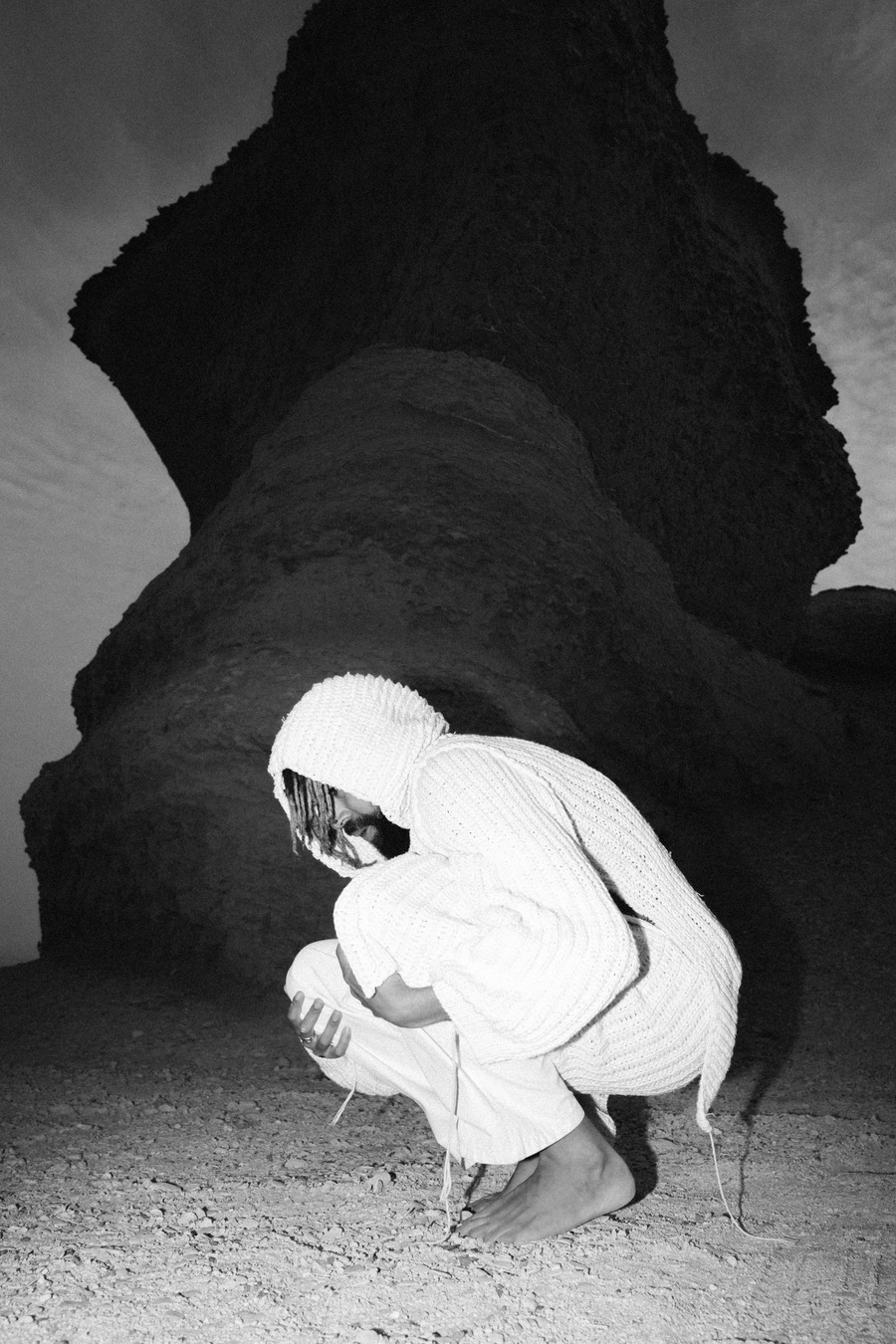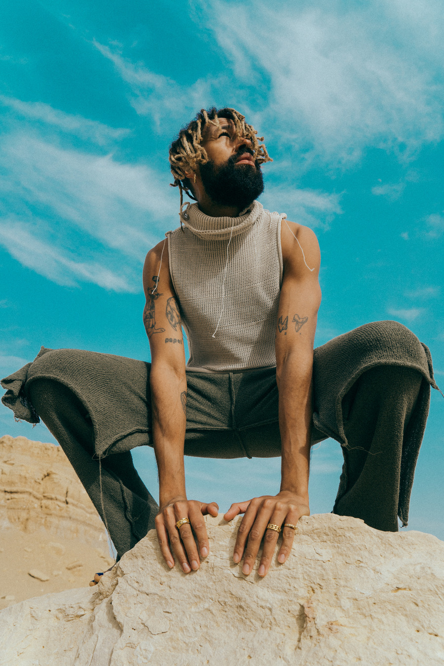 A KALTBLUT exclusive. In a remarkable artistic fusion, Adesse, the renowned German singer, joined forces with Mohsen Othman (Le Mosen), an esteemed Egyptian photographer and art director based in Paris, amidst the picturesque desert of Fayoum, Egypt. This unique collaboration also featured the creative genius of Lara Severa, a self-made independent female fashion designer from Berlin, known for her intricate hand-knitted pieces and previous work experience with Ye, formerly Kanye West.