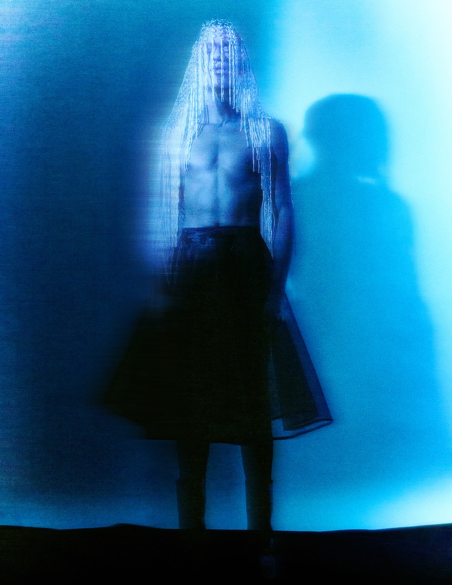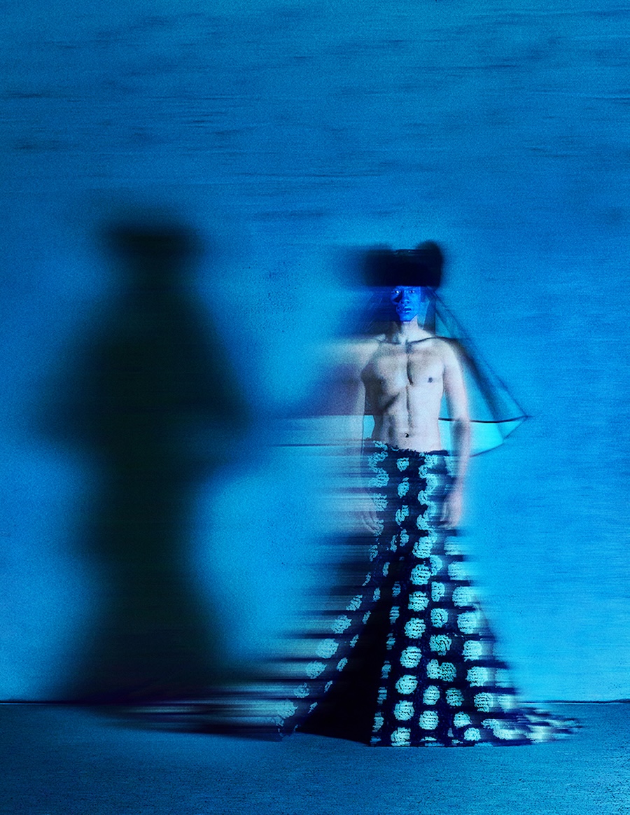 A KALTBLUT exclusive. Art Direction & Photography by Jamie Lee. Creative Direction & Styling by Luis David llomuri. The model is Daniel Rodriguez. Makeup is by Amilia Bas. Fashion by Nazarene Amictis, Kathy Y Russell, Gucci, Heike-NY, Sultry Affair Style, SSENSE, Manuel Tiscareno, Jevon Terance, KU:L. Echos of Reverie is a surrealist fashion editorial suspended between memory and dream. Envisioned as a theatrical sequence unfolding in a symbolic, purgatory-like space, the story unfolds as a visual symphony of tension and introspection through the lens of metamorphosis.