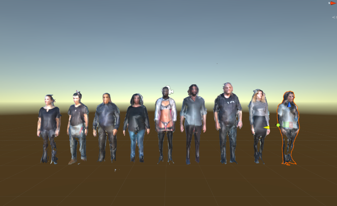 “After that, I set up a mini sound reactive engine in Unity with new and reused code from other pieces done before. The final oniric world is a limbo of uncanny ambiances with pre-2k game aesthetics where local people are glitched and deformed by sound in front of well-known spots for them. The live sound then built the emotional story. I took advantage of what ‘En Chantier’ (‘in process’) suggested, so I decided to embrace the scenes with emotional pads and oppressing MIDI textures just triggered by 2 myo sensors playing virtual synths, searching a bit the Clockwork Orange contrast with classical music opposed to violence sequences.”