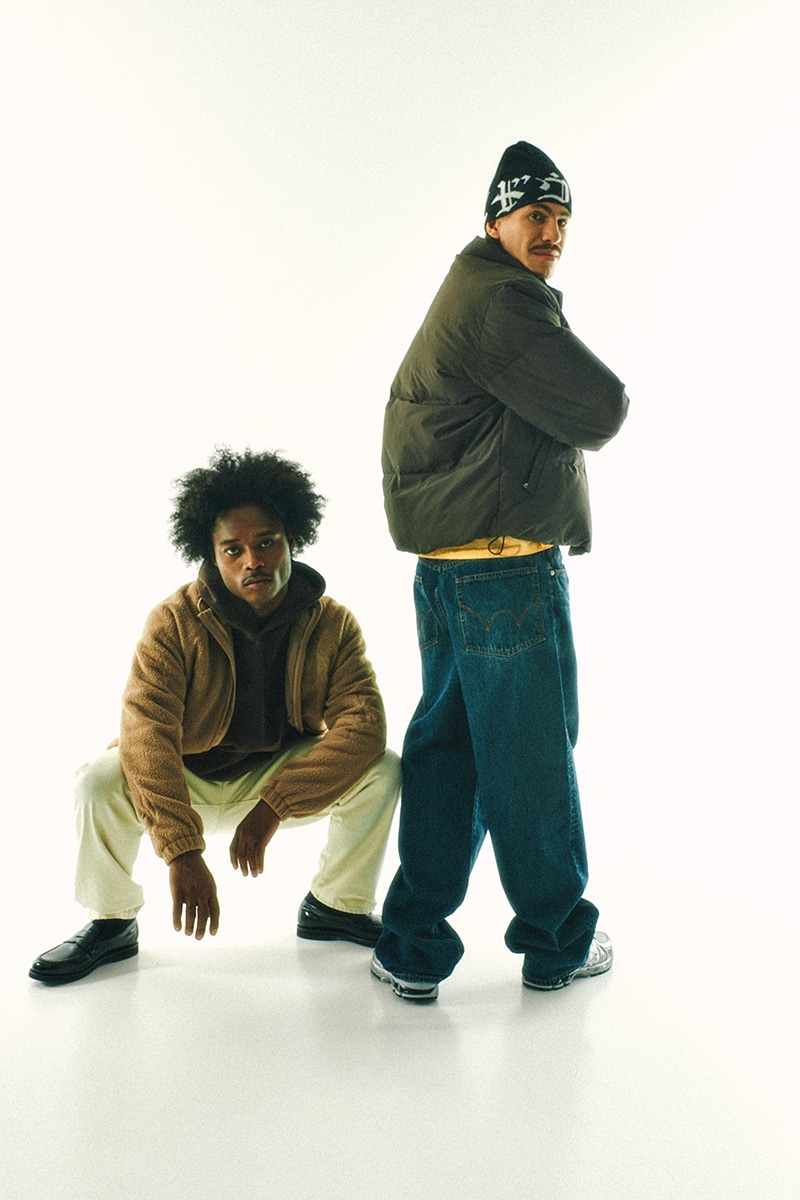 Venturing beyond denim, EDWIN explores the realms of wool, corduroy, and leather in standout pieces like the Dogma Jacket. Intricate quilting and bespoke patterns bring life to the Darren Coach Jacket, Camper Vest, and Sven Overshirt. The collection is rounded out with accessories including cardholders, blankets, and scarves, offering the perfect finishing touches for the season.