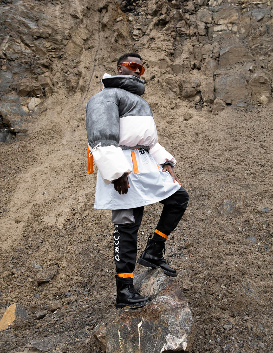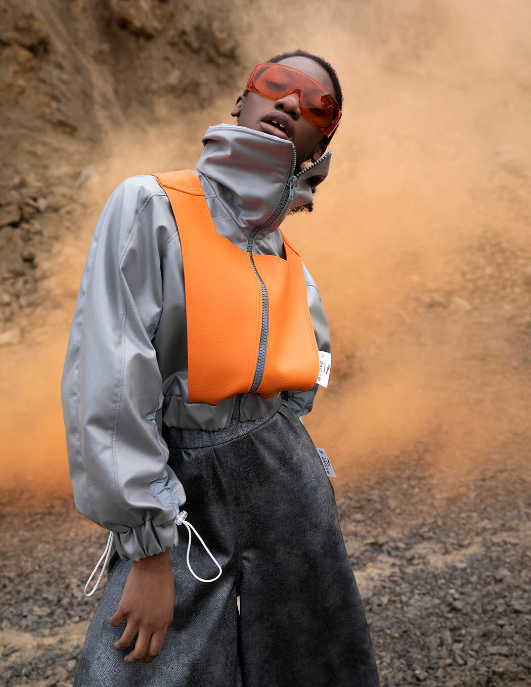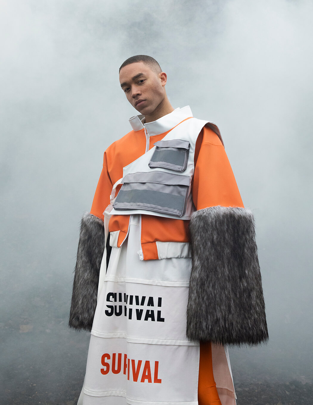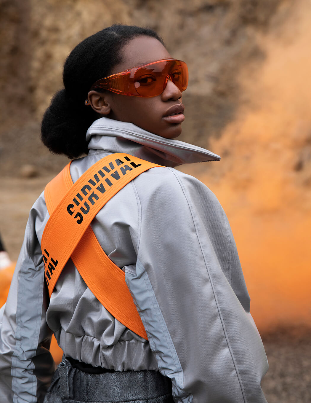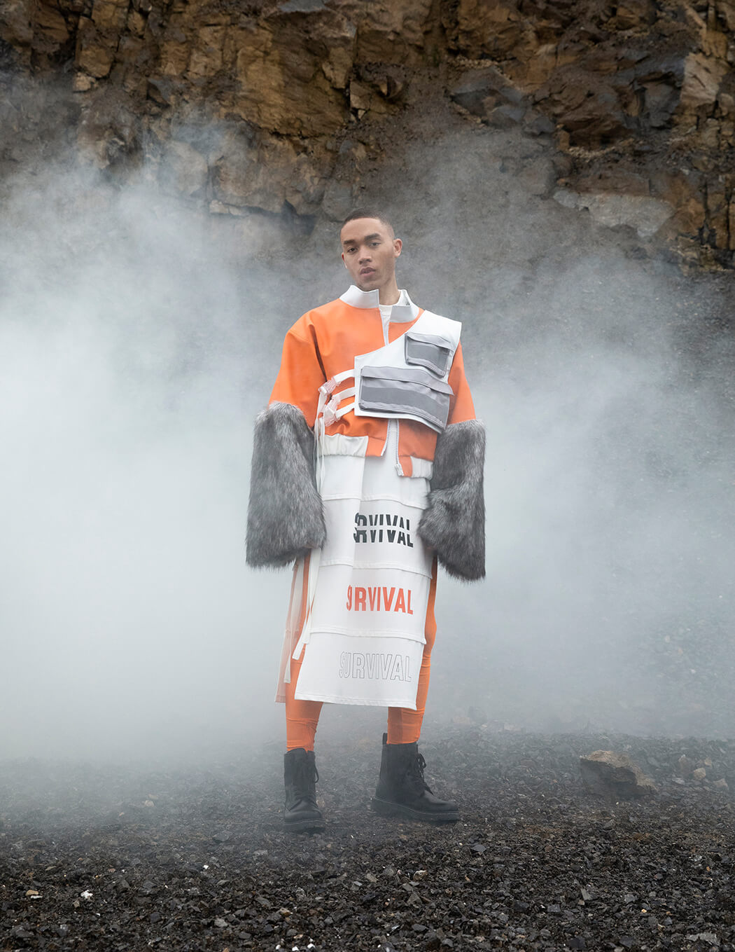 The collection “Human Survival” embodies the fight for survival of humanity in a world threatened by climate change and pollution. The collection is designed to provide maximum protection against all weather extremes that could be triggered by climate change, but at the same time be extremely motionless and comfortable so that the collection does not prevent movement in the event of a fight. The collection is a statement against climate change and is intended to draw people’s attention to the topic.