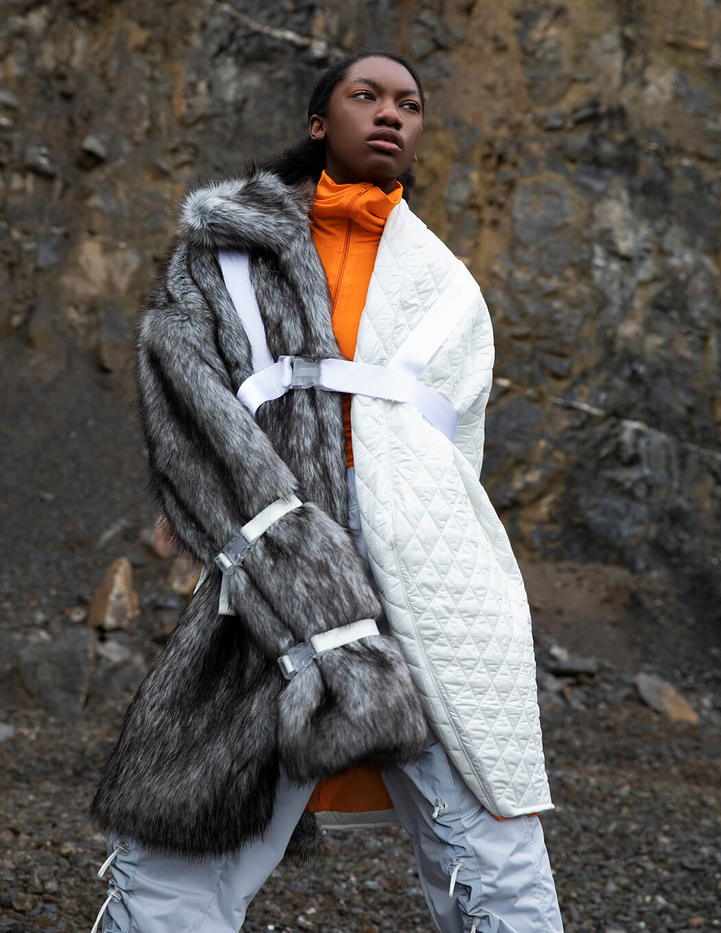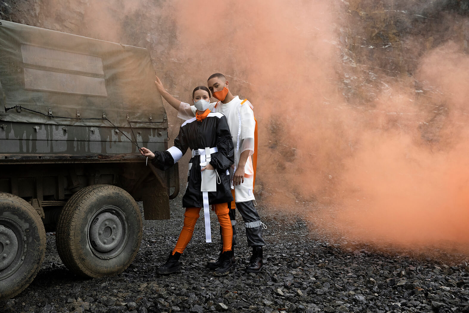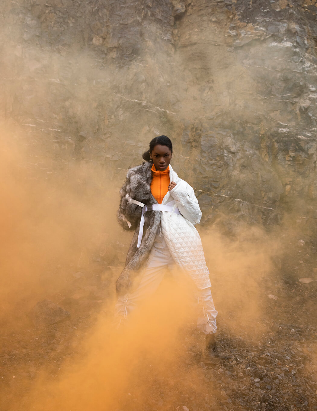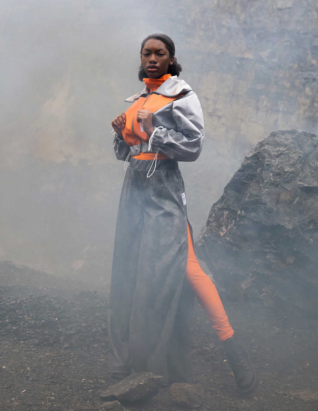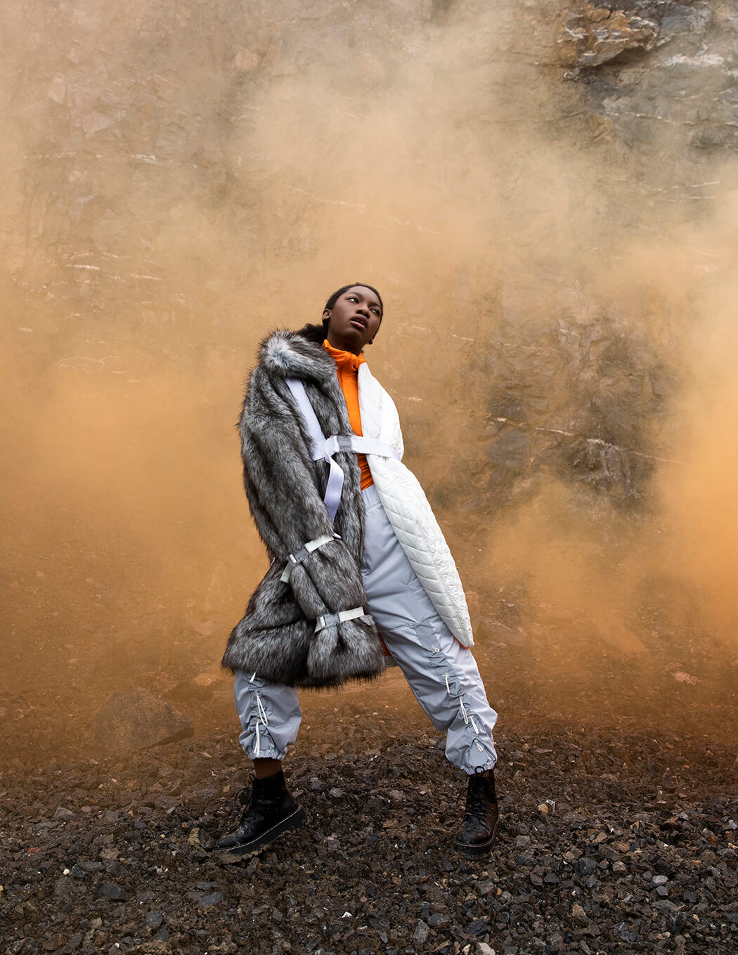 The collection “Human Survival” embodies the fight for survival of humanity in a world threatened by climate change and pollution. The collection is designed to provide maximum protection against all weather extremes that could be triggered by climate change, but at the same time be extremely motionless and comfortable so that the collection does not prevent movement in the event of a fight. The collection is a statement against climate change and is intended to draw people’s attention to the topic.