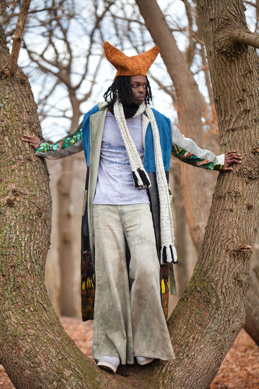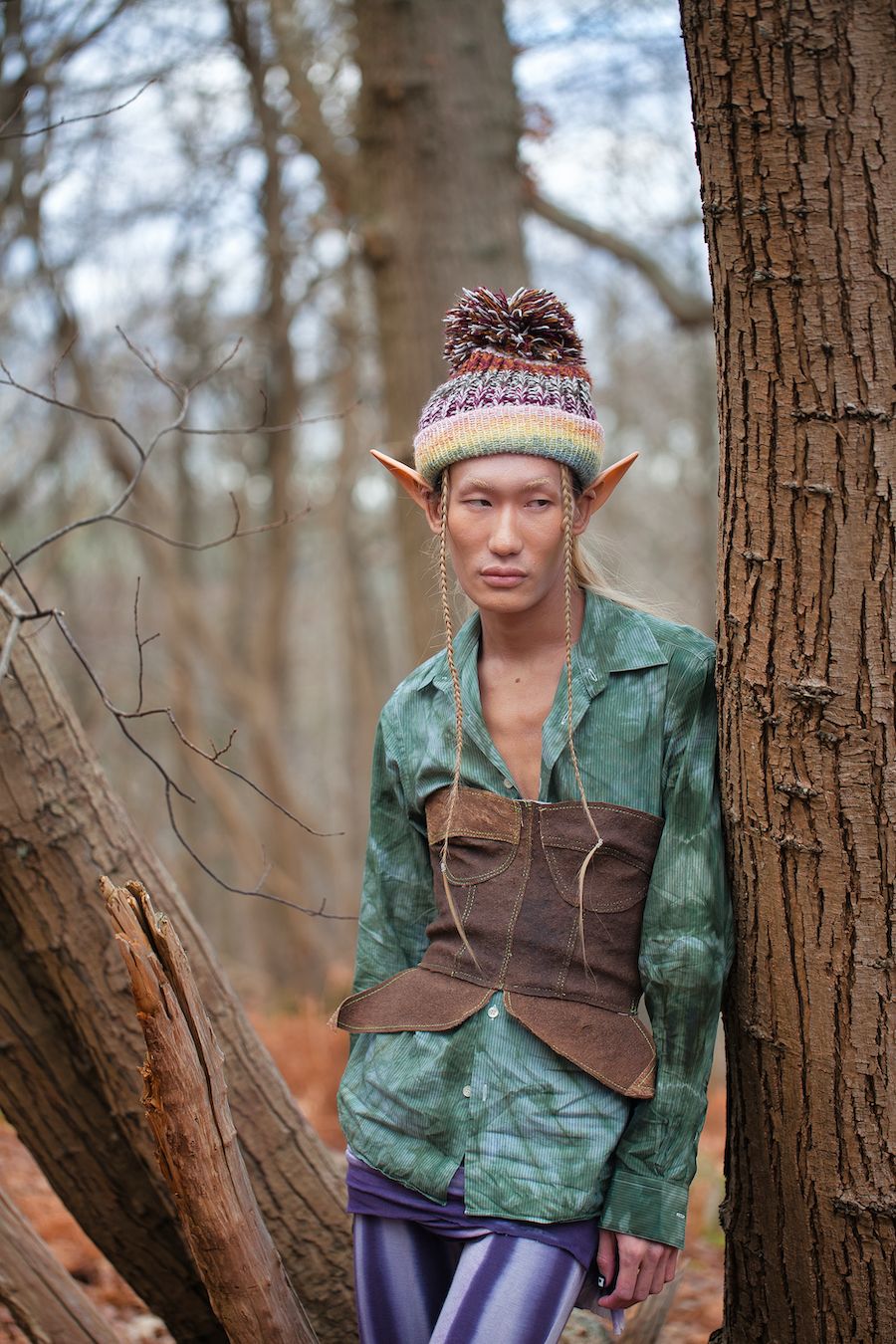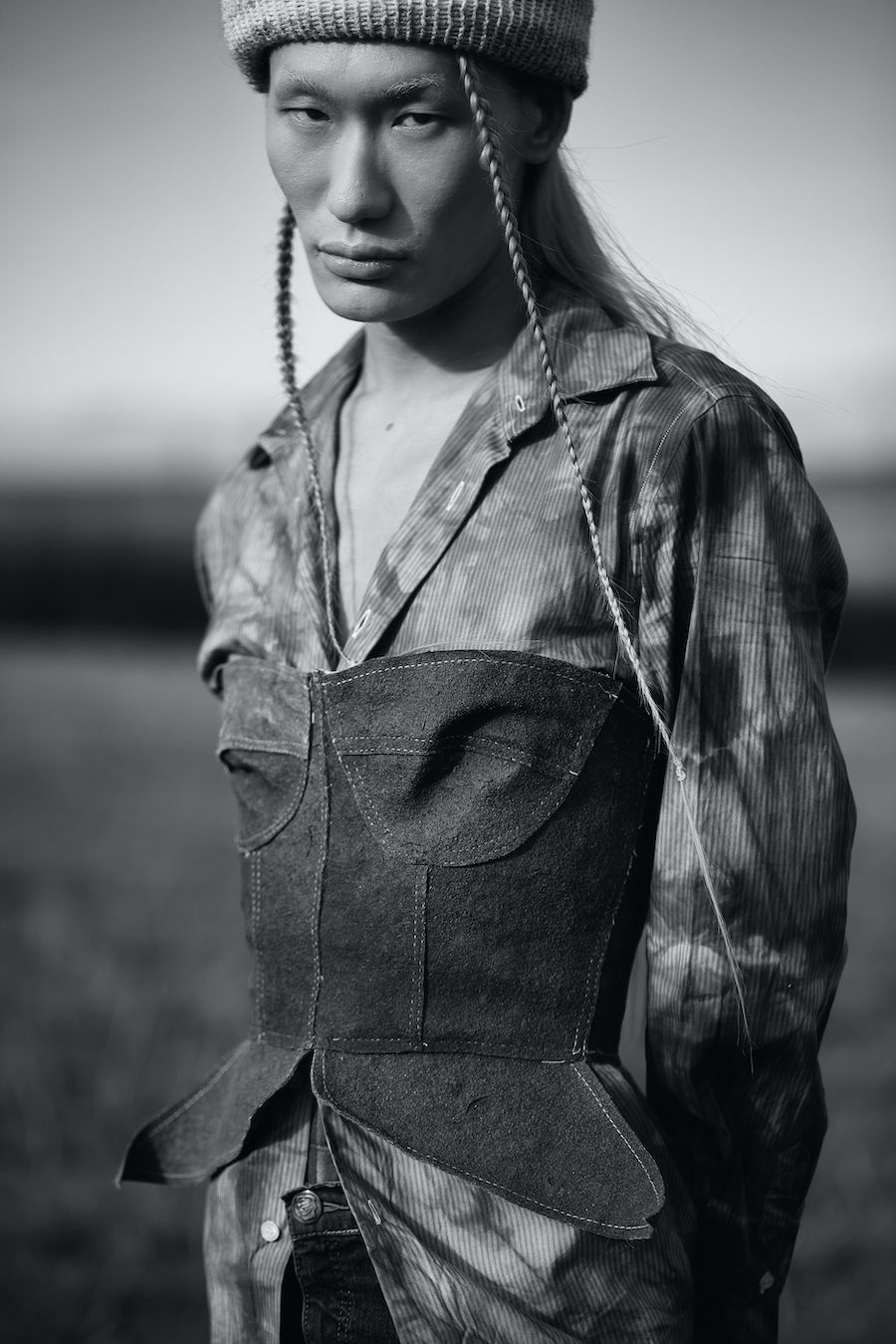 EIRINN HAYHOW walks us deep amongst the trees, where we can listen to the heartbeat of the forest. We are tree people, and our bond with nature can not be broken. Her beautiful genderless collection consists of a combination of salvaged and sustainable materials, using natural dyes from different types of plants and barks. This season EIRINN HAYHOW introduces her own grown biomaterials. Plant leathers she has grown from food waste and foraged plants.