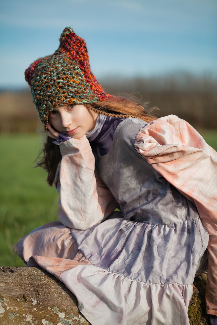 “I create all my own dyes, mainly seasonally, from foraging plants and berries locally and using fruit and vegetable waste to create my colour palettes. I use mainly natural fibers in production and I am 100% sustainable.”
