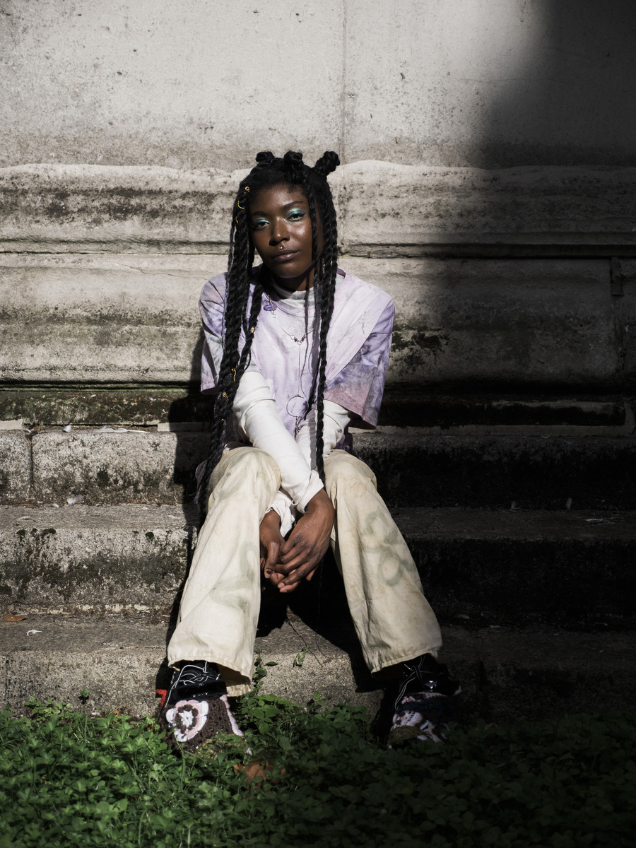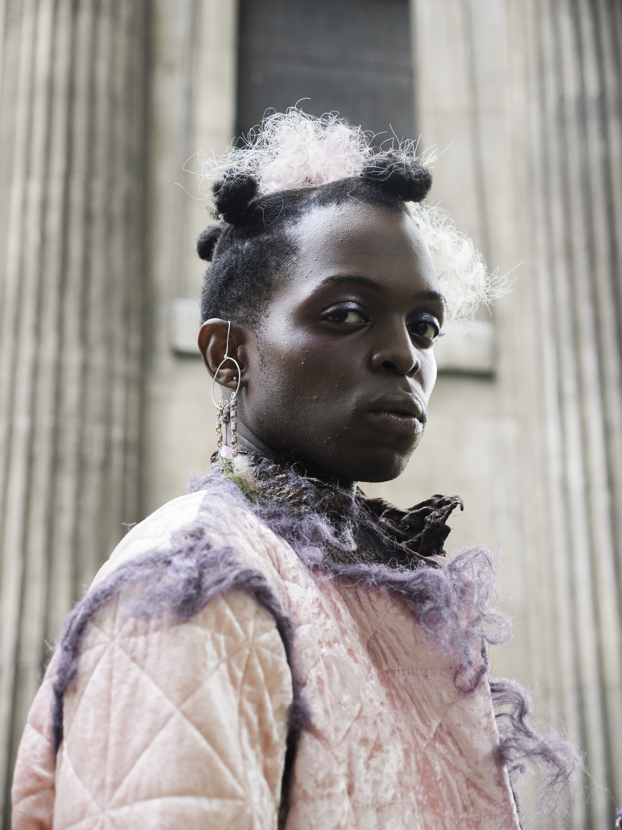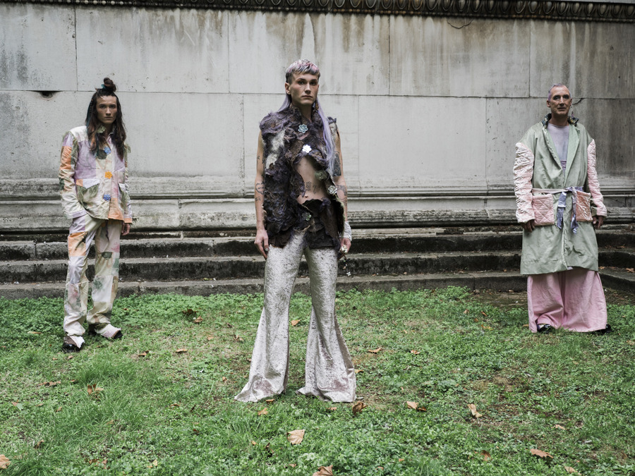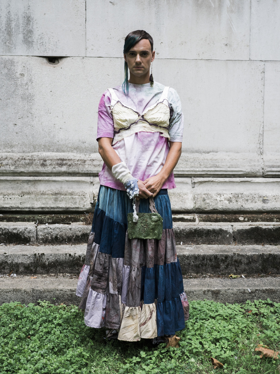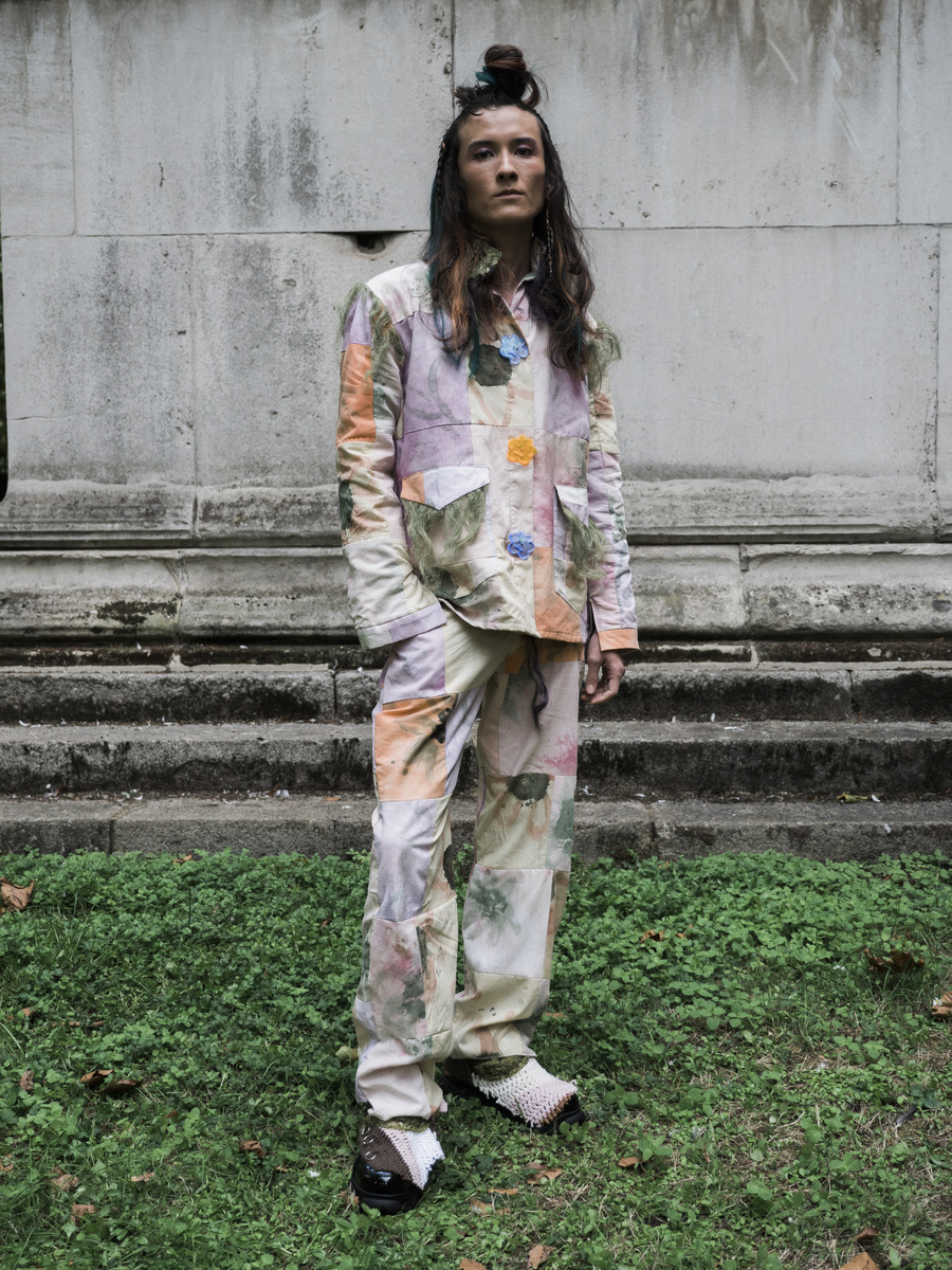 EIRINN HAYHOW also collaborated with Hakan Keppler and Buffalo London. Reimagining Hakan’s charity pride show, customising them with waste fabric and biomaterials from the collection.