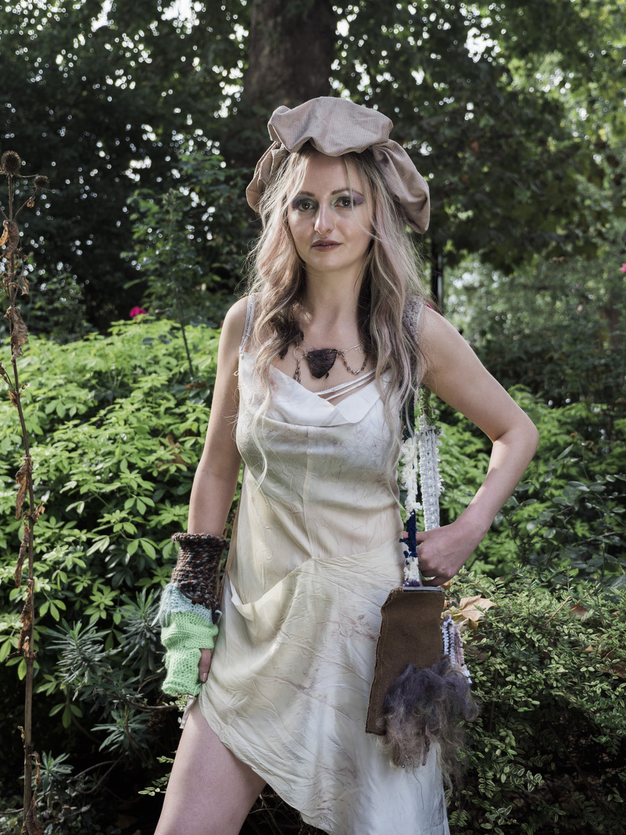 Hayley Edwards was the hair stylist and has supported EIRINN for many of her productions. The pair collaborated on hair design, using EIRINN’s plant-based inks as hair dye for the collection. Photography was by David PD Hyde and Videography was by Jess Dadds. Jess and EIRINN have worked together on the majority of her projects and his work is absolutely amazing! Witchy Drinks were provided by Zambur ferments. Mugwort beer, kombucha and lion mane drinks are grown locally and foraged from the Kent Coasts.