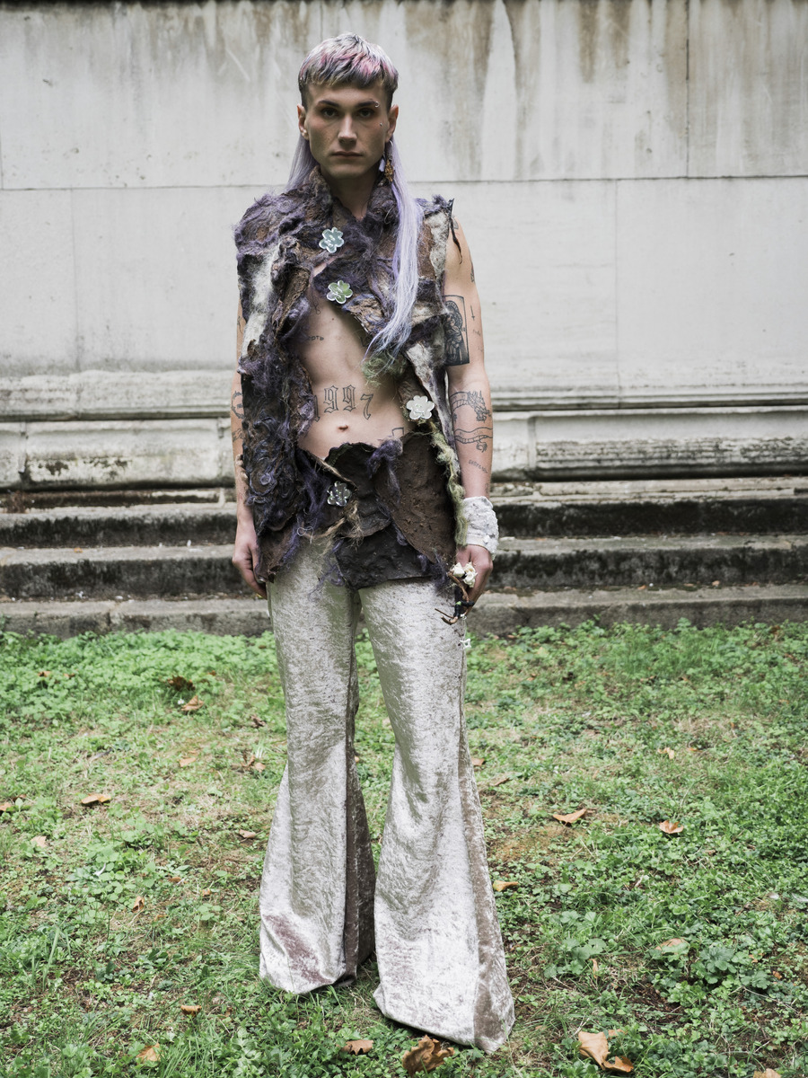 During London Fashion Week designer Eirinn Hayhow unveiled the PLANTASIA 22/23 collection! Biocouture garments are grown from a combination of waste coffee granules donated by @weareherecoffee as well as foraged flowers, plants and hemp fibres. Leggings salvaged crushed velvet and buttons from salvaged mirror Perspex. Photography by David PD Hyde. www.instagram.com/eirinnhayhow