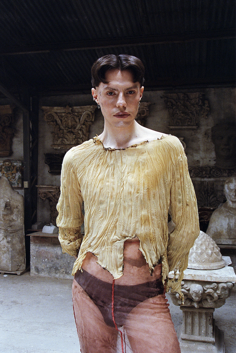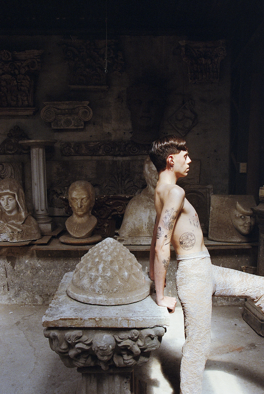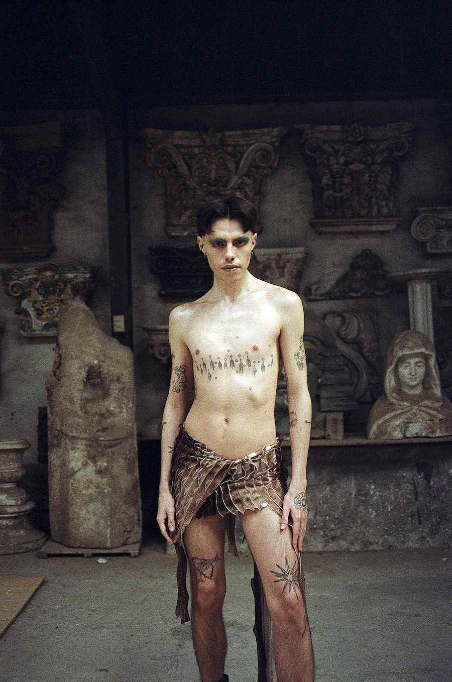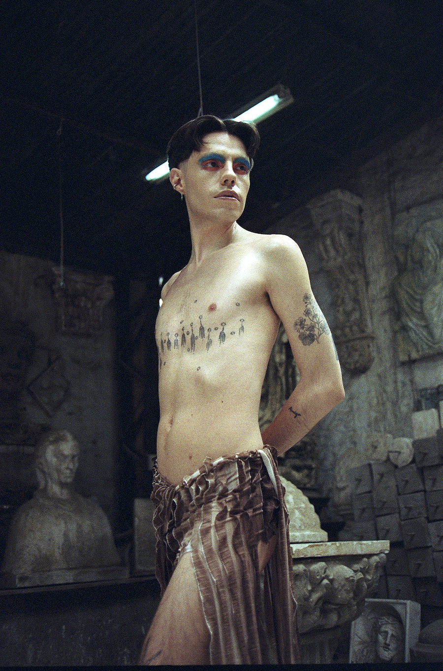 A KALTBLUT exclusive. Photography by Javier Pino. The model is Romero Martínez. Make up by Muriel Arias. Styling by Luckas Matías. The brand used is Plastic Toy.