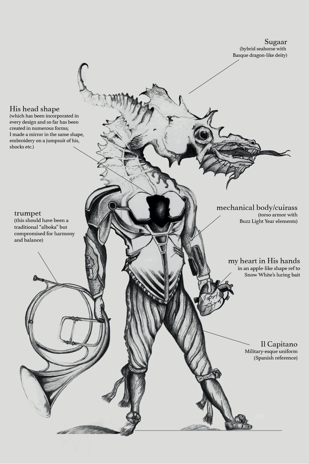 ‘El Vasco’ came along fairly recently and was put together, admittedly, very organically. It was an effortless attempt to merely portray what’s felt to be my one and only muse and the ideas simply kept coming. This is my first completed dedicated series of illustrations, which I’m very proud of and thoroughly enjoyed its process during the making, giving it the necessary time. The sketches depict a lot of Basque and Spanish elements as well as some of his personal characteristics and idiosyncrasy through a spectrum of spookiness and thrill. They are and will keep coming for certain.