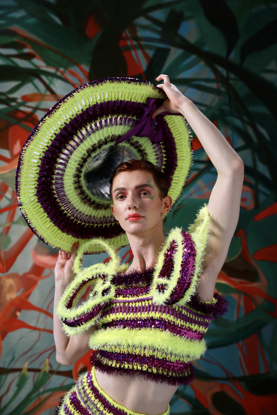 In this session, we delve into the artistry of three brand-new Haute Couture garments, masterfully crafted by Drew Kent, a knitwear student at Central Saint Martins.