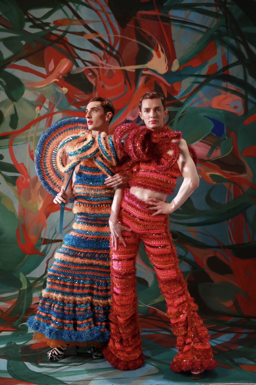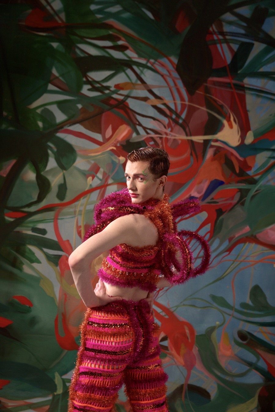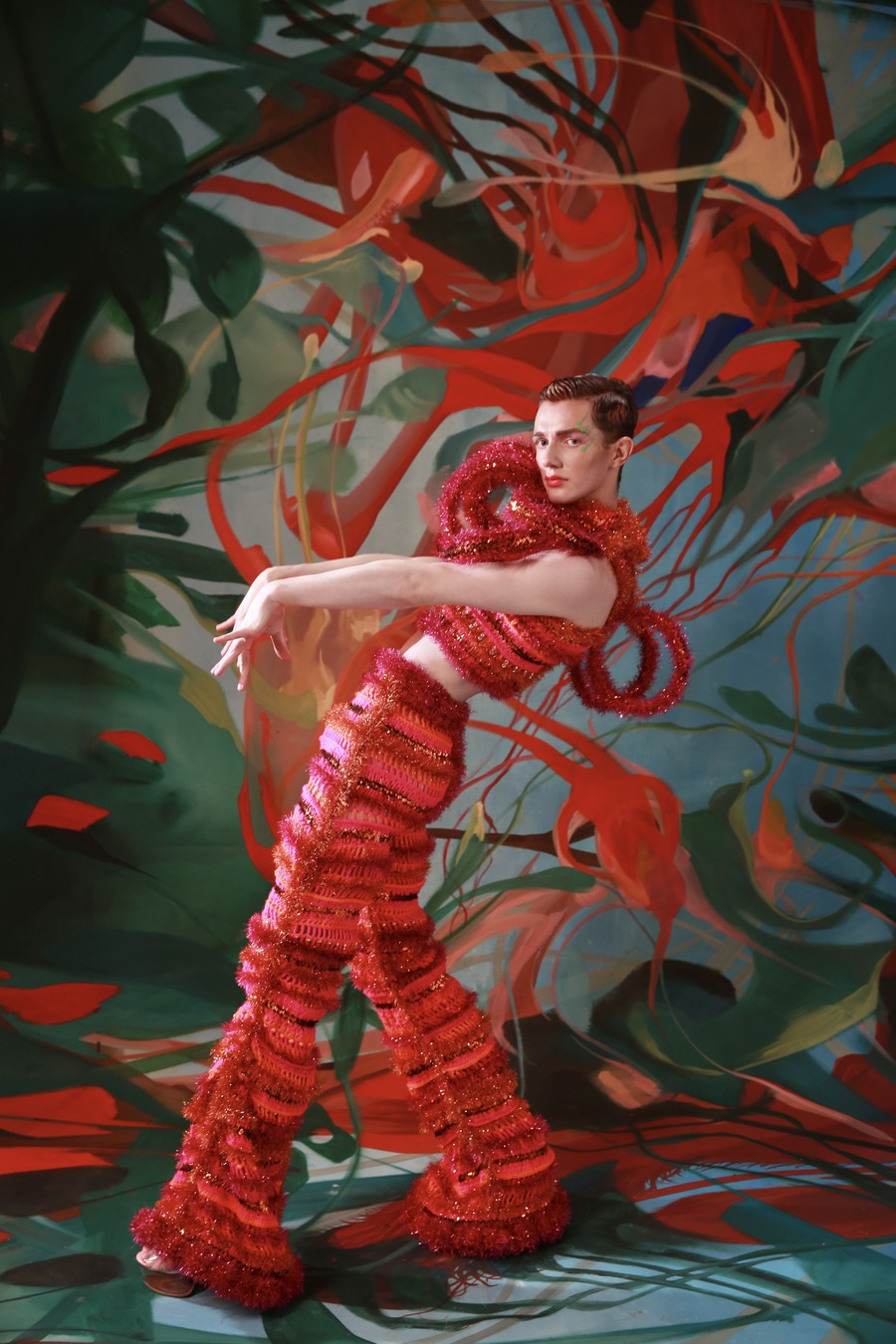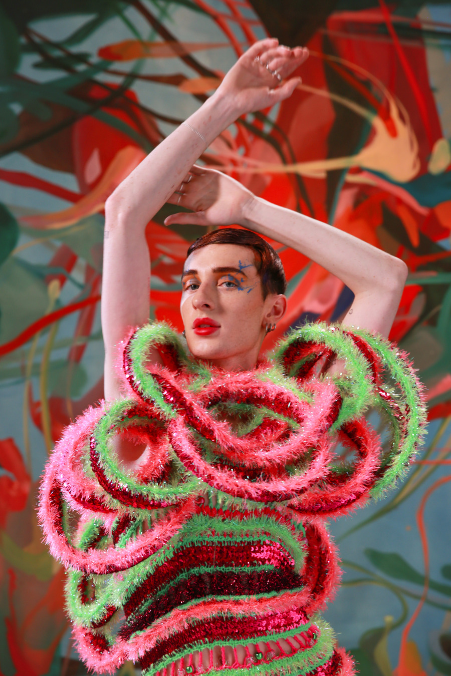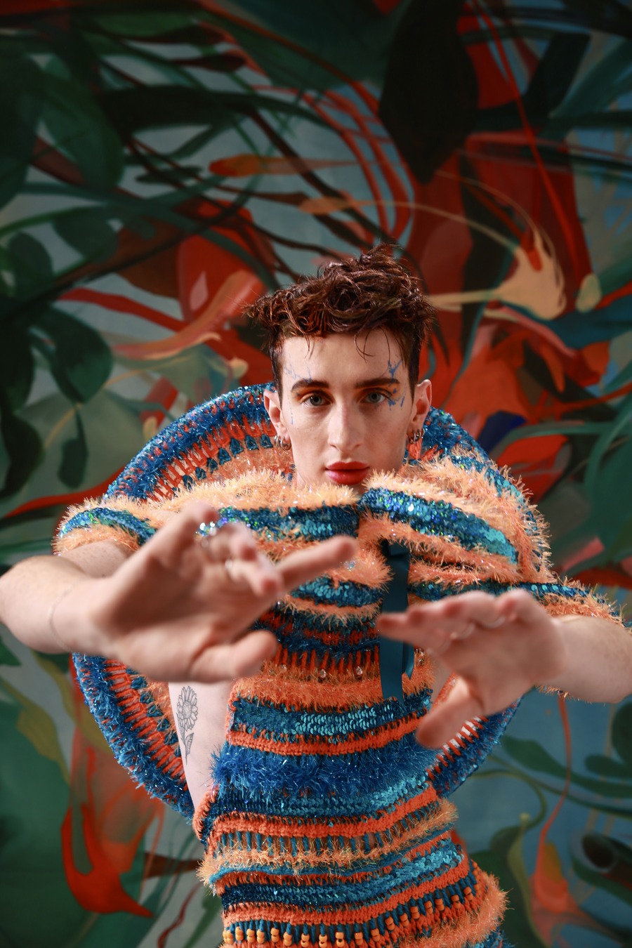 This collection is a testament to my ongoing commitment to drawing inspiration from queer history. For this particular series, my creative wellspring was the vibrant world of club kid couture, resulting in a collection that pays homage to its influences’ bold and eclectic spirit.”