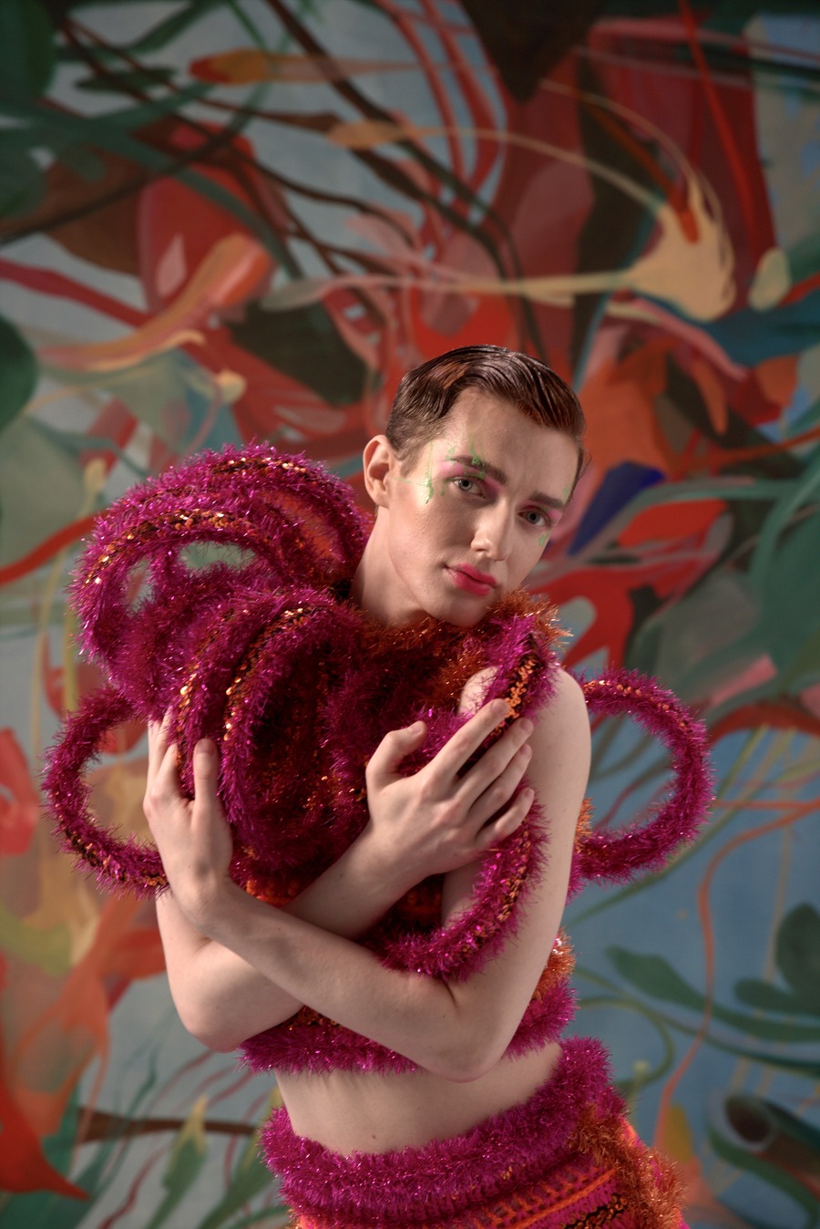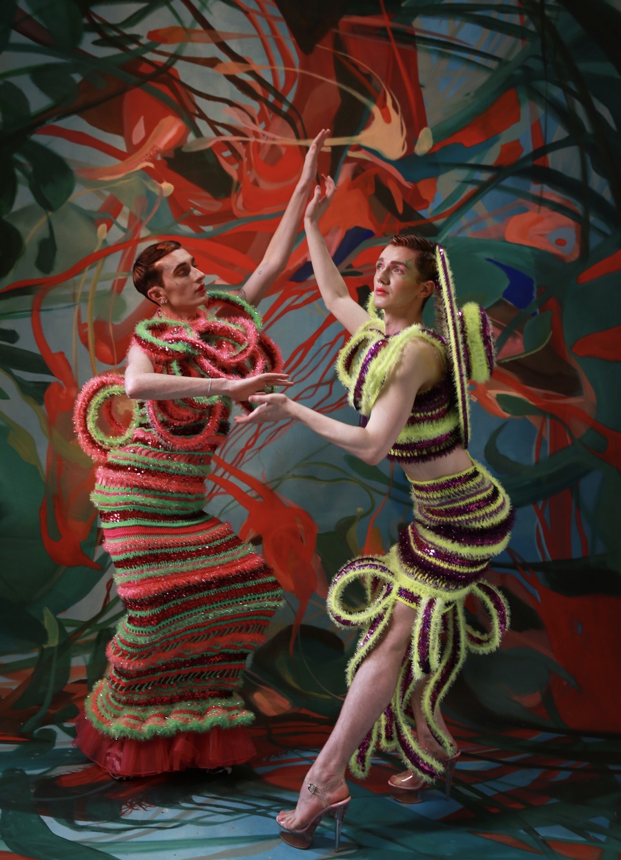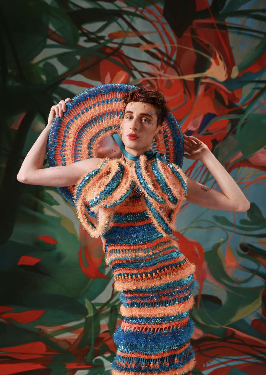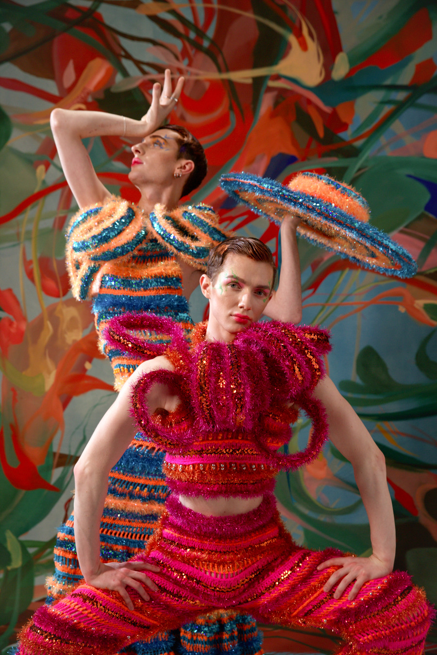 This collection is a testament to my ongoing commitment to drawing inspiration from queer history. For this particular series, my creative wellspring was the vibrant world of club kid couture, resulting in a collection that pays homage to its influences’ bold and eclectic spirit.”