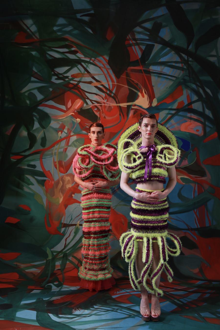 In this session, we delve into the artistry of three brand-new Haute Couture garments, masterfully crafted by Drew Kent, a knitwear student at Central Saint Martins.