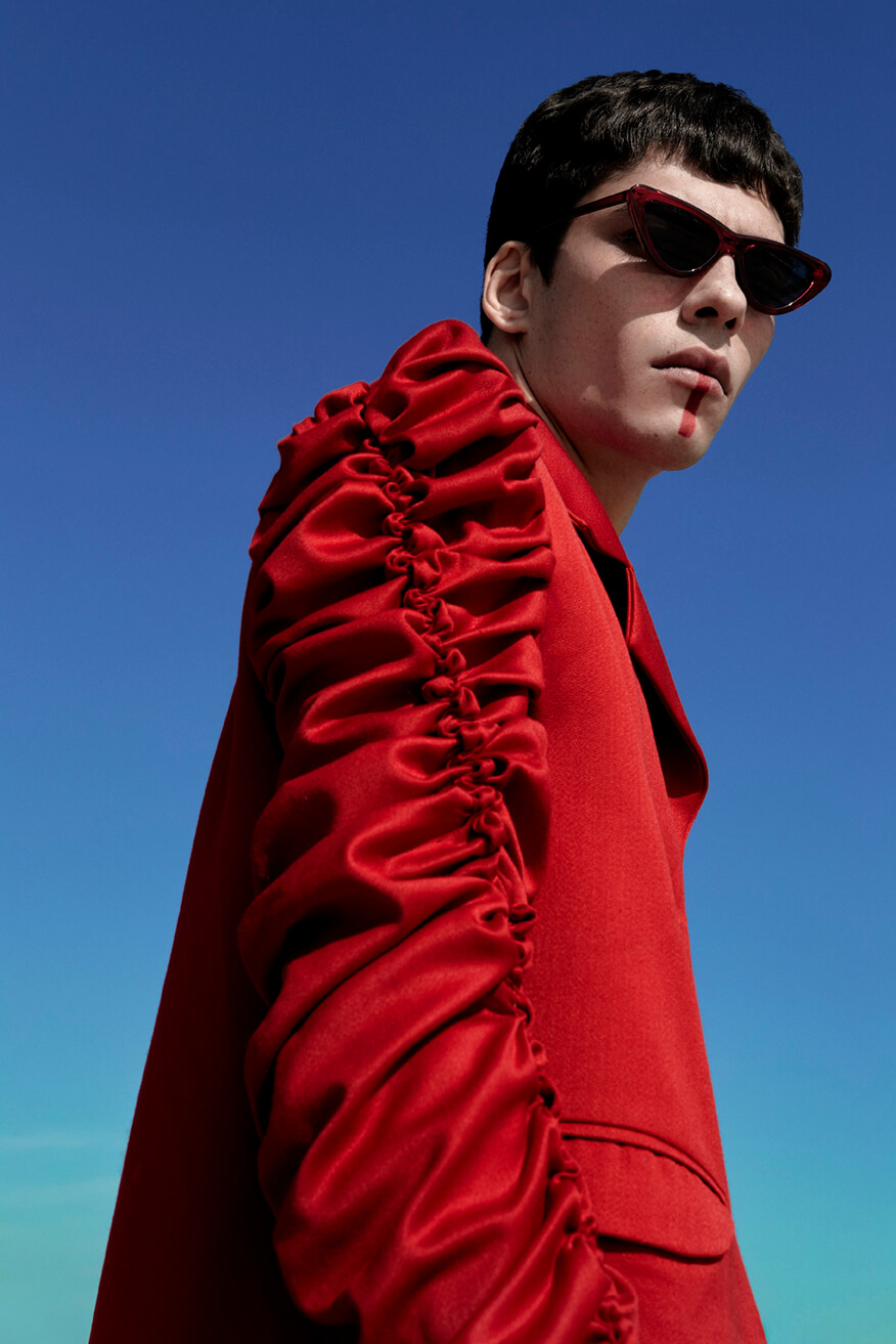 A KALTBLUT exclusive menswear editorial. Model is Daniel Gimeno. Photography by Mercedes Hausmann. Make up by Vanesa de la Fuente. Stylist Amaia Olmedo used fashion by Ainara Antxía, María Ávila, ASOS, Dalas, Doble 6, Elosegui, Joaquín Dogo, Lotto, Lupe ́s Vintage.