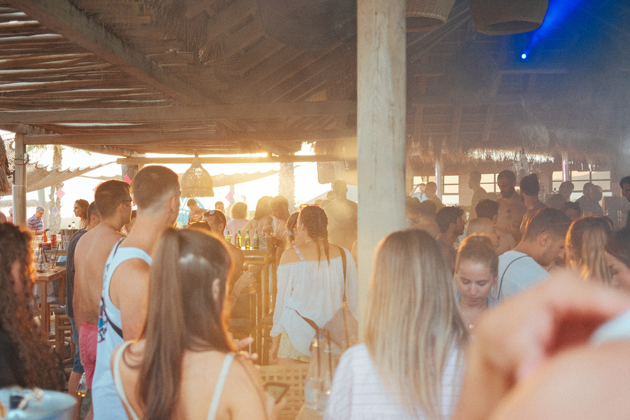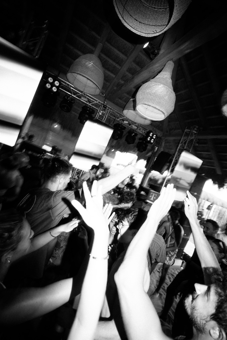 Back to the future, real convertibles park along the roadside, “like rocket propulsion” the Italo disco basses of her set thunder behind the green reeds through the vegetation of Montenegro, Ulcinj to be precise. She is the main act today, stepping in at short notice, invited by Electronic Beats. It is one of the eight live music experiences hosted by Telekom Electronic Beats this summer. Shrouded in changing colors from spotlights, sometimes violet, sometimes space-blue, then magenta again. The play of colors refracts and reflects in her beaded necklace and silk scarf knotted to a bandana top, a preview of the upcoming “Altered Ego” collection from A Better Mistake x Electronic Beats. It’s the only clothing the temperatures in Montenegro allow; on the dance floor, everyone wears bikinis or nothing at all. The only thing that warms up this crowd more than the sun is this set. Her set. “Cosmic Disco Sounds” with Shubostar.