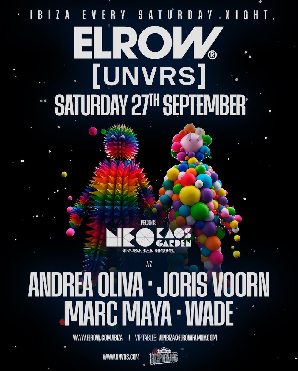 With record-breaking turnouts and nearly sold-out shows each week, the season is now entering its climax, culminating on October 4th for elrow’s season closing at [UNVRS]. Until then, audiences still have the opportunity to engage with this visual manifesto of color, diversity, and emotion, rendering Neo Kaos Garden 2.0 an international benchmark within the global scene.