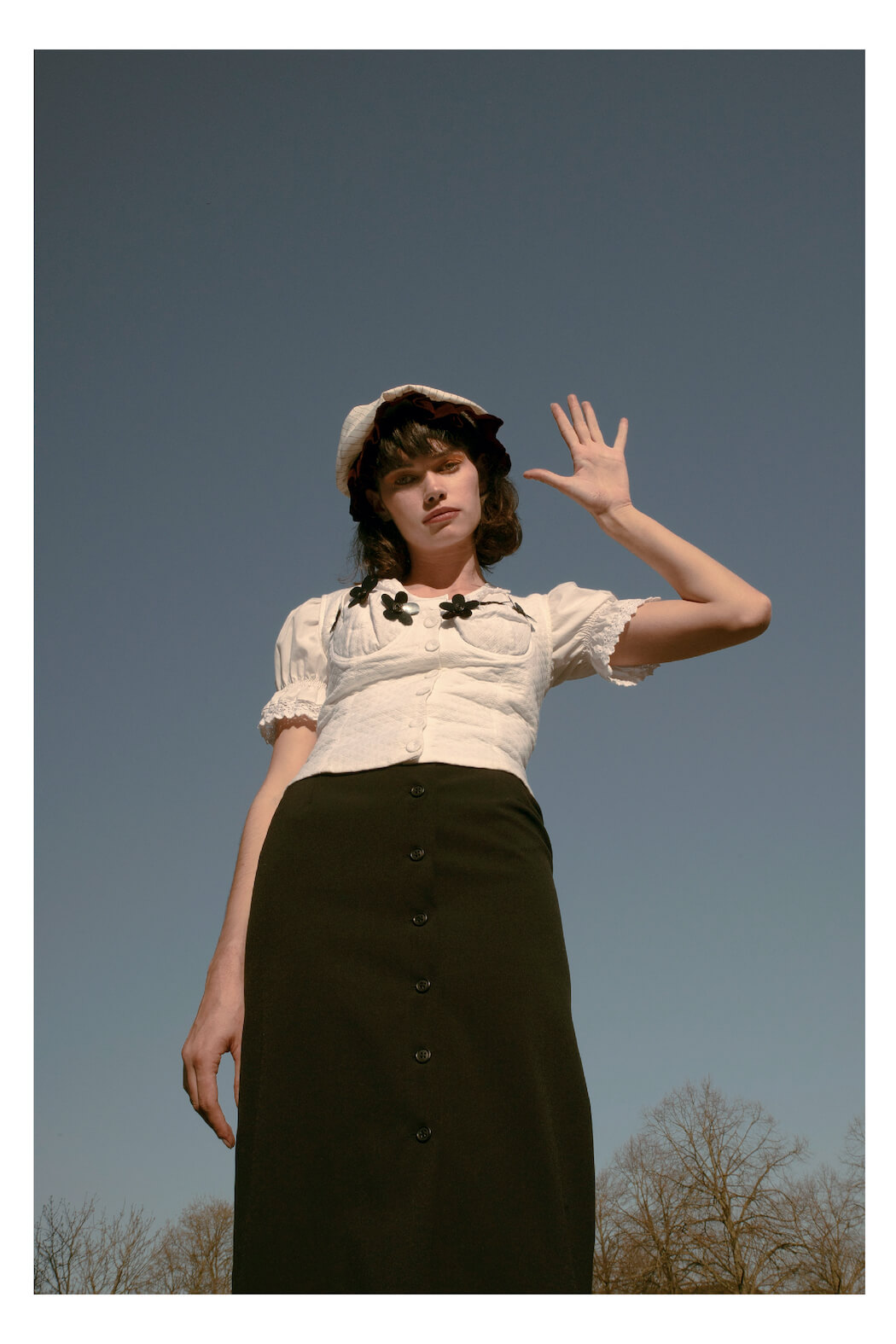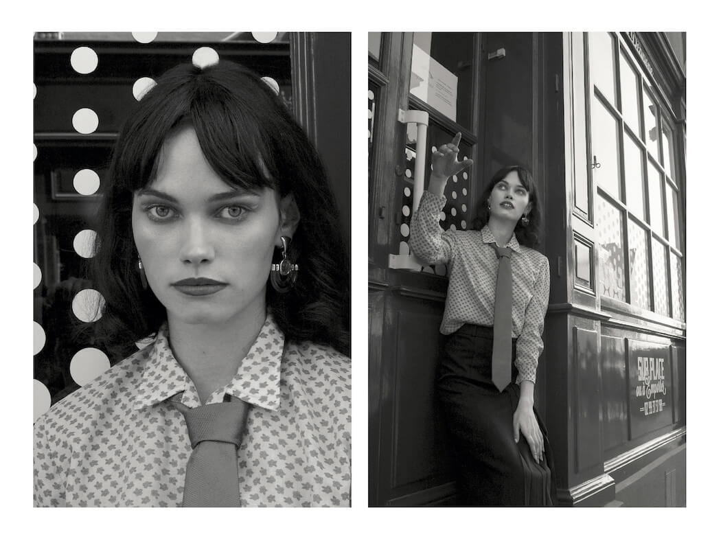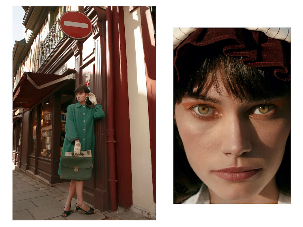 A KALTBLUT exclusive. Photography by Mariette Garault. Model is Maëlle Armilhon. Make up and hair by Mathilde Badoul. Styling by French Fripes. Brands are Reggio Bergame, Lafayette Collection, Apunto, London Fog, Samson, Guivert Frères, Targa.