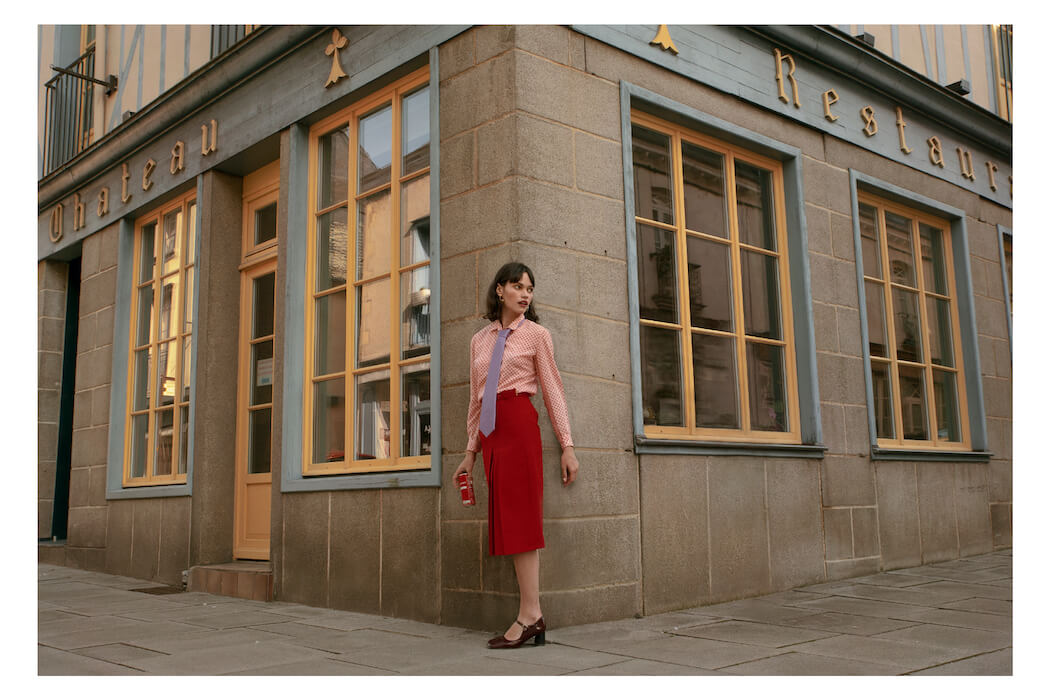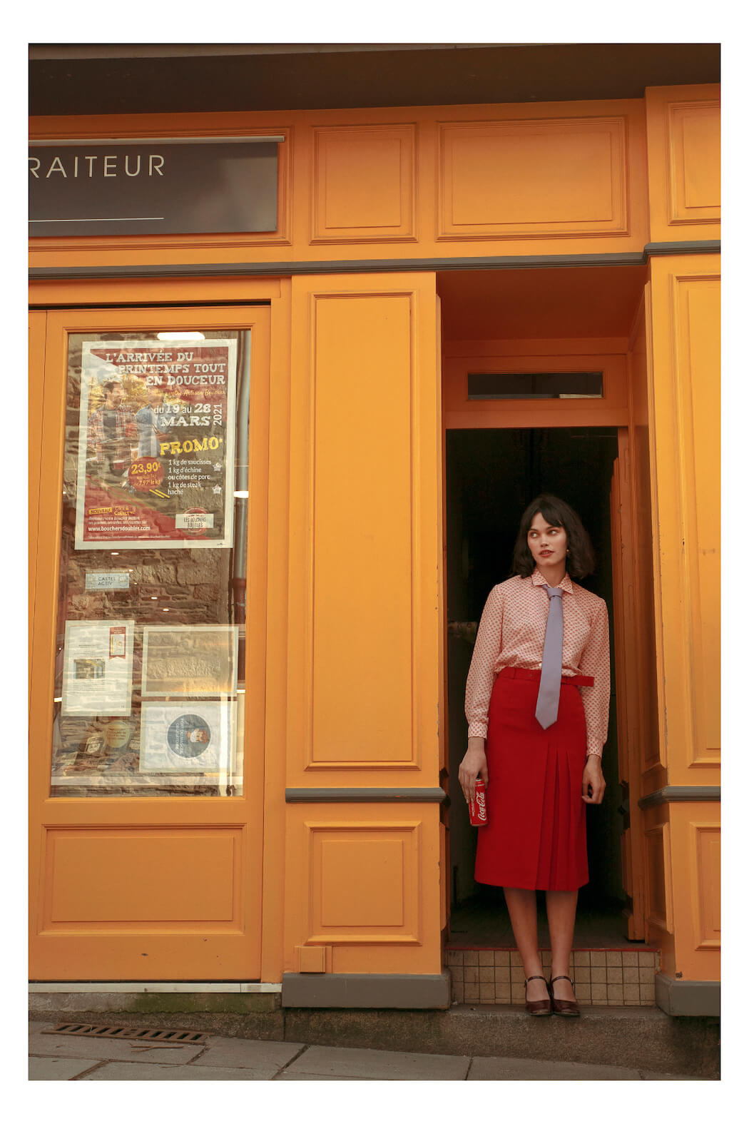 This series was conceived as a tribute to these empty cities, these deserted streets and these many closed down shops. During a sunny spring day, Maëlle decided to put on her purple tie, which she kept for special occasions, and bring these abandoned places back to life, by wearing colourful clothes and exploring every inspiring spot.