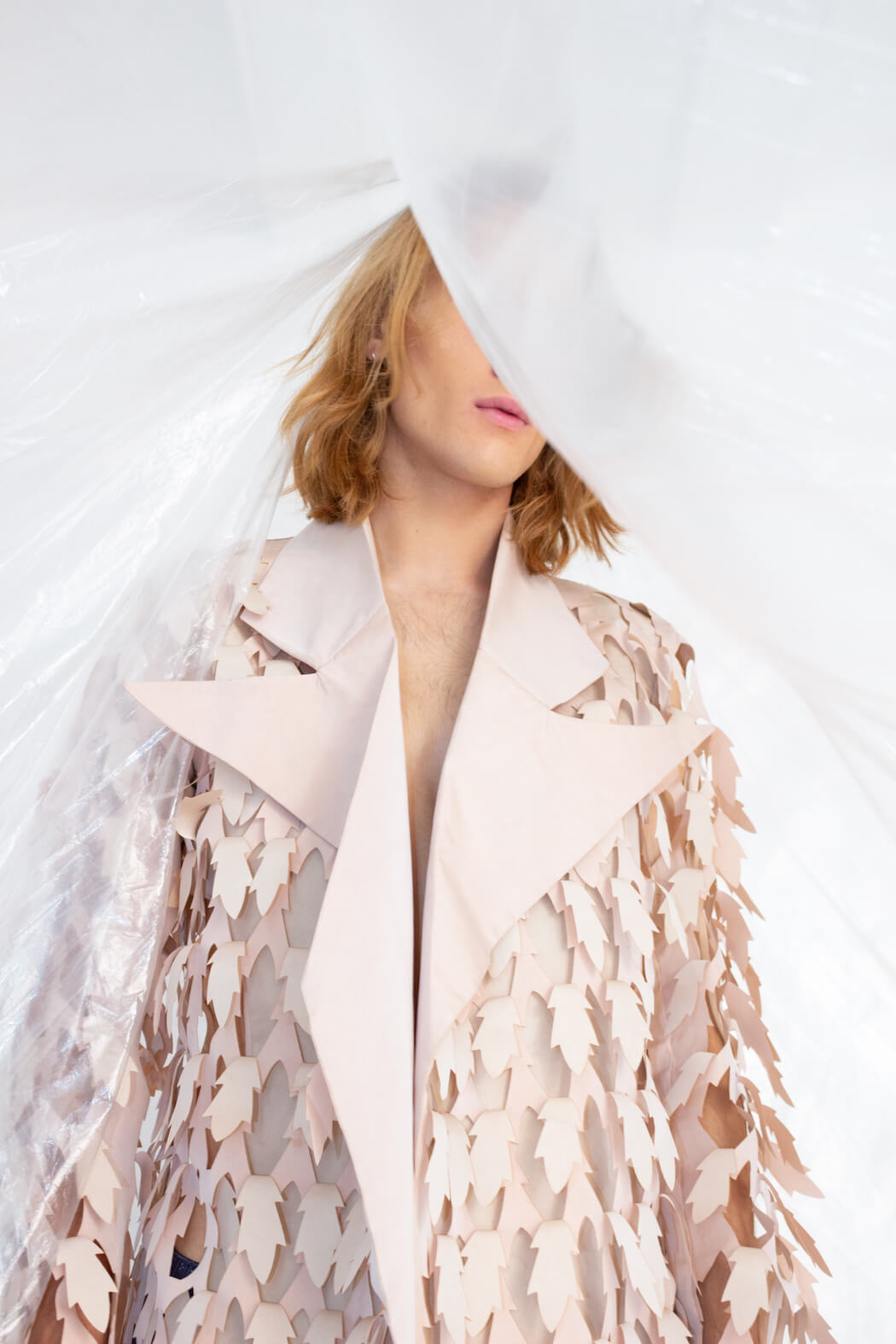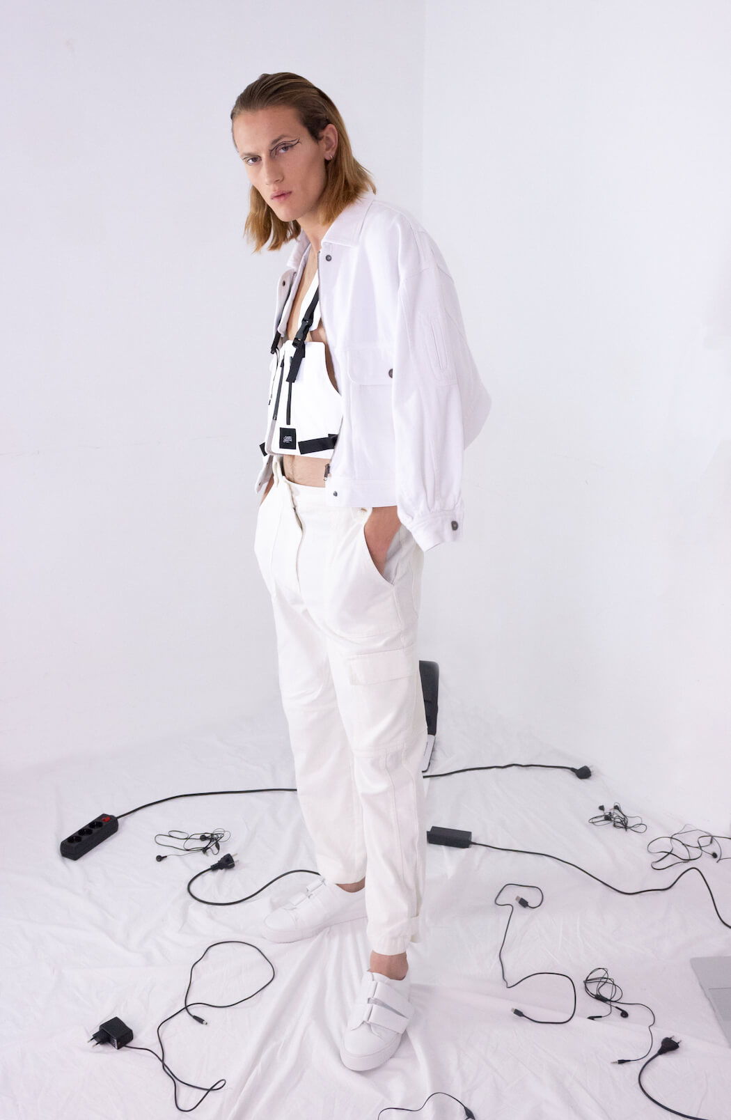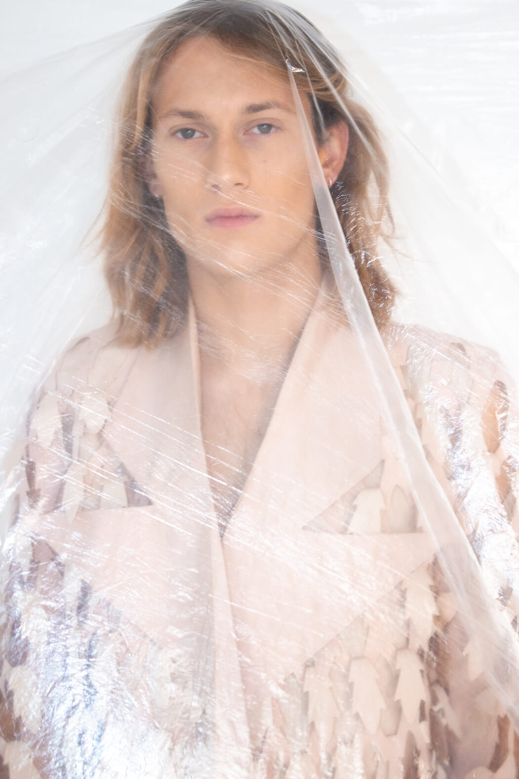 A KALTBLUT exclusive. Photography & Art Direction by Diego Ezía. Model is Estian Govea at FIFTH Models. Stylism by Marc Leal. Make up by Elena Morales. ” My name is Diego Ezia and I am 25 years old. I was born in a small city called Salamanca, in Spain, but I am currently living in Barcelona studying to be an art director. I am passionate about photography since I was 15 and, since then, with fundamentally self-taught training I have carried out different projects in analog and digital photography. During the last year, I have been focusing my main interest in art direction and fashion photography, while combining my work with my creativity studies in Brother Creative School.” Pink blazer: Mans Concept menswear, Blue Choker: Mans Concepts menswear, Blue pants: Mans Concept menswear and White Jacket: American Vintage.