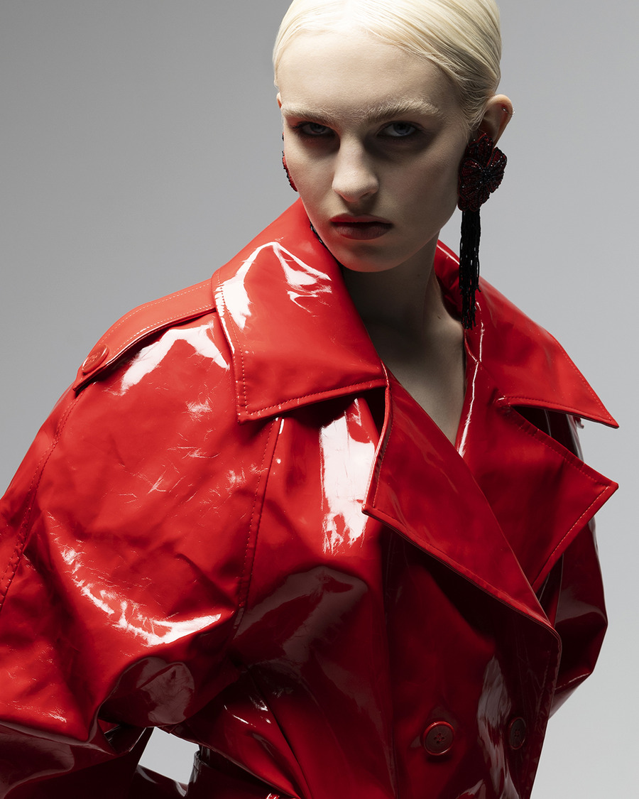 ‘Introducing a strong and powerful woman who is not afraid to fight – our latest fashion editorial captures the essence of a fierce and confident individual. Clad in a striking red vinyl coat, the model exudes strength and determination, embodying the message that fashion can be a form of empowerment. From the bold colour choice to the powerful poses, this editorial showcases the beauty and strength of a woman who is unafraid to take on the world’