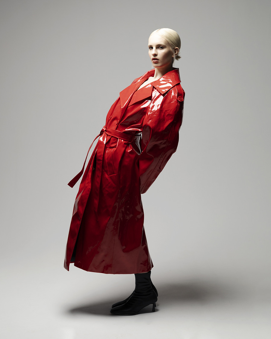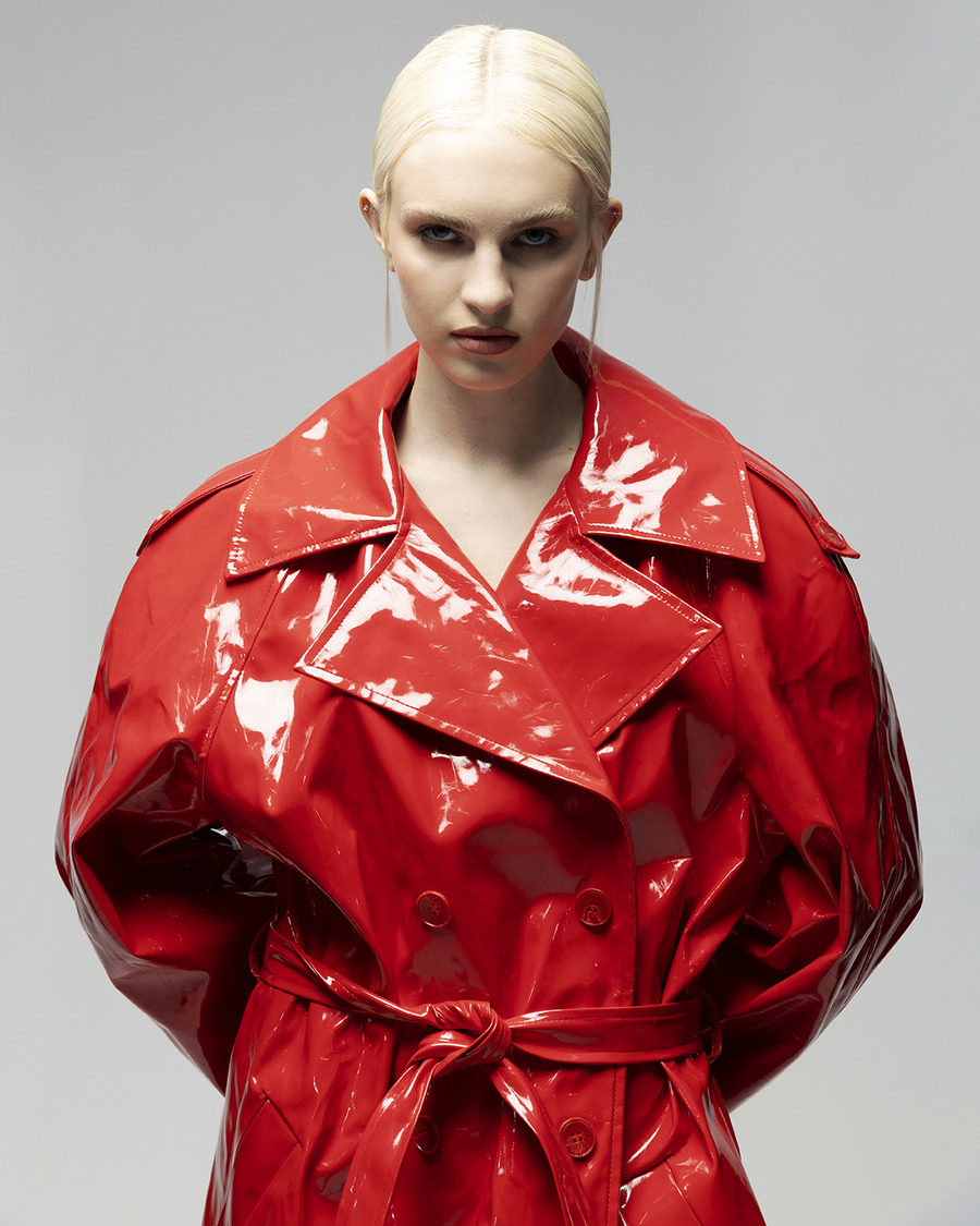 ‘Introducing a strong and powerful woman who is not afraid to fight – our latest fashion editorial captures the essence of a fierce and confident individual. Clad in a striking red vinyl coat, the model exudes strength and determination, embodying the message that fashion can be a form of empowerment. From the bold colour choice to the powerful poses, this editorial showcases the beauty and strength of a woman who is unafraid to take on the world’