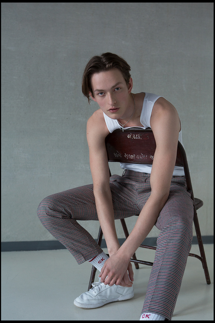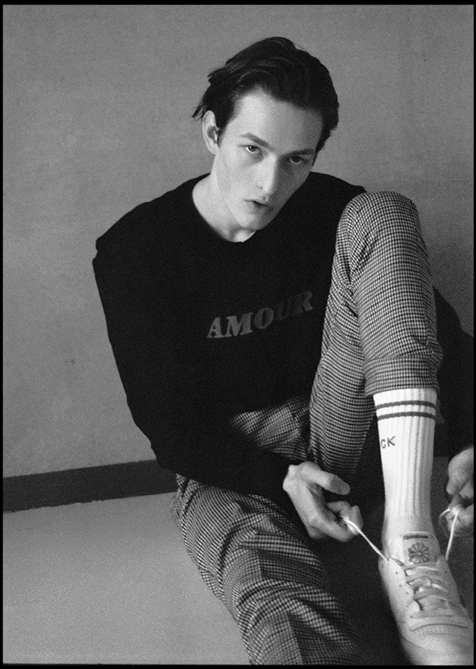 A KALTBLUT exclusive menswear editorial. Photography by Lukas Goldschmidt. Model is Erik Kett signed at PMA. Styling by Sarah Osl. Fashion by Kiomi, H&M, Sandro Paris, Reebok, Calvin Klein, Topman.