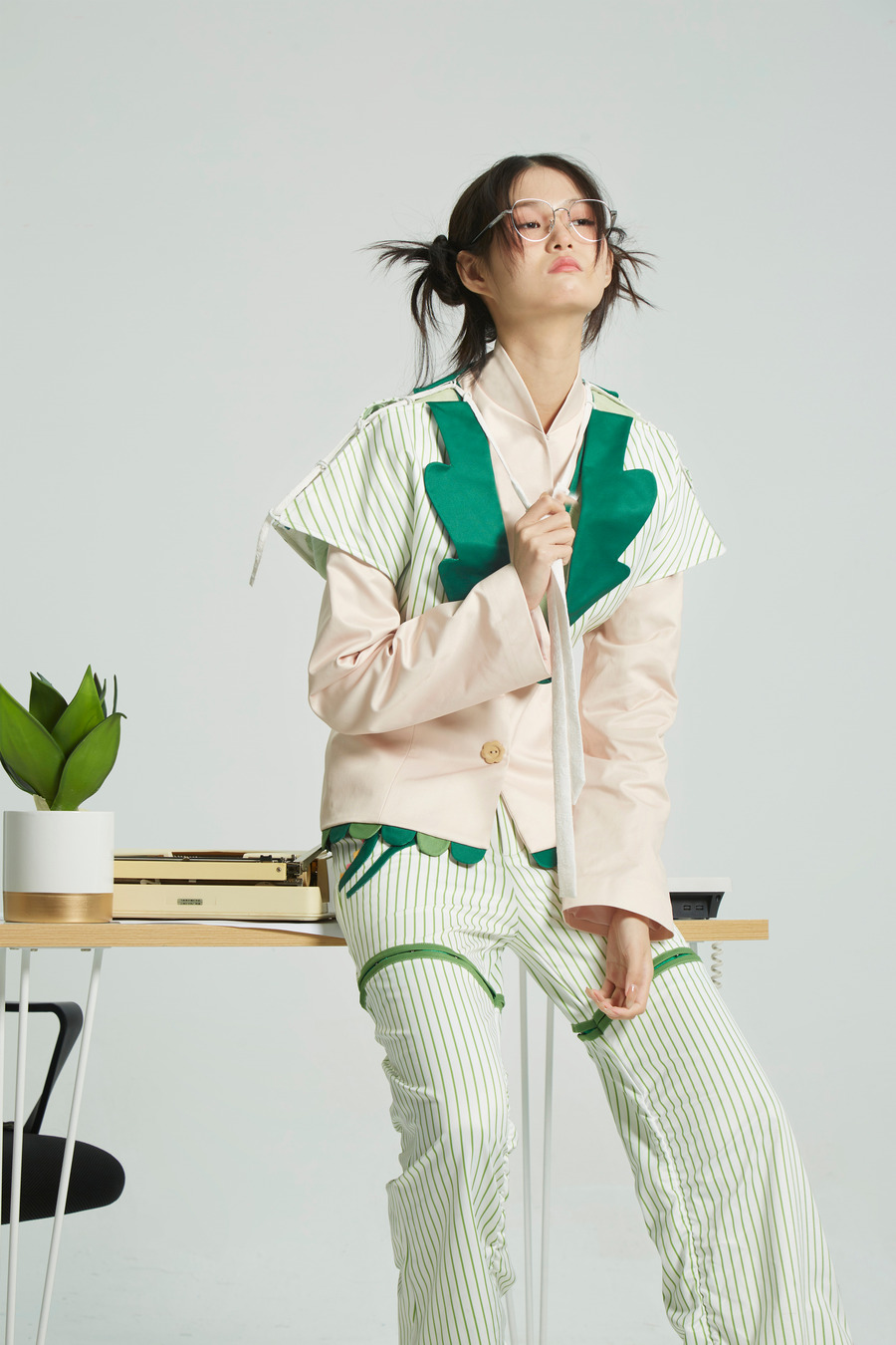 Introducing designer Huili Jin, a fashion student from the Royal College of Art. By upcycling vintage shirts and tablecloths sourced from second-hand shops, Huili transforms pre-loved fabrics into elegant, wearable art. Photography by Ce Zhang. The model is Yuchen Xiang. Makeup and hairstyle by Xiawei.