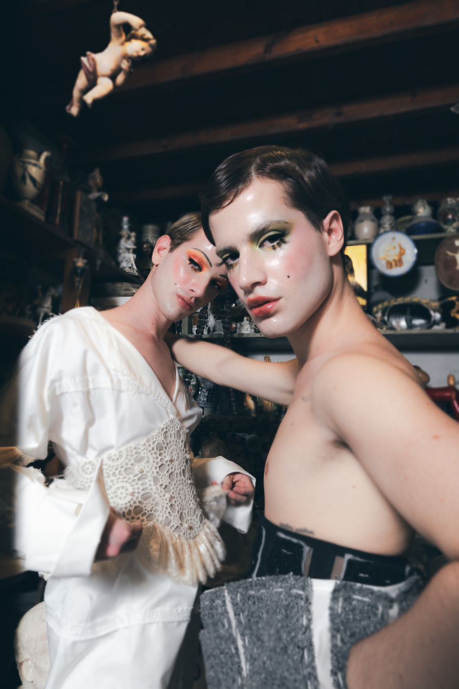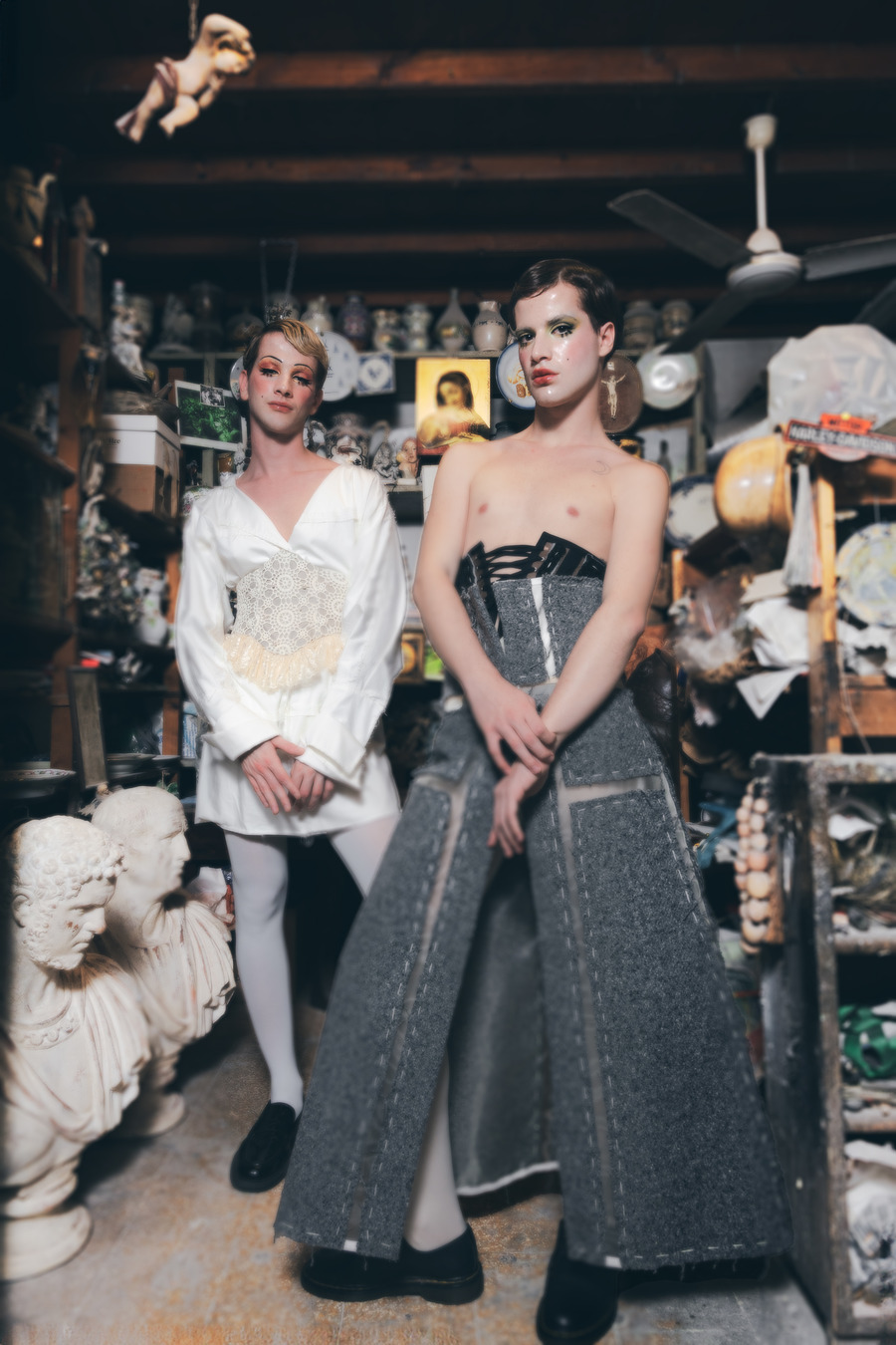A KALTBLUT exclusive. Photography by Evelina Macovei. The models are Dario Bevilacqua and Simone Bevilacqua. Make Up & Hair by Lucrezia Buffone. The brands and designers used are Aurelia Gennaro, Francesca D’Angelo, Alessia Fontana, Calzedonia, and Alessandro Chelazzi.