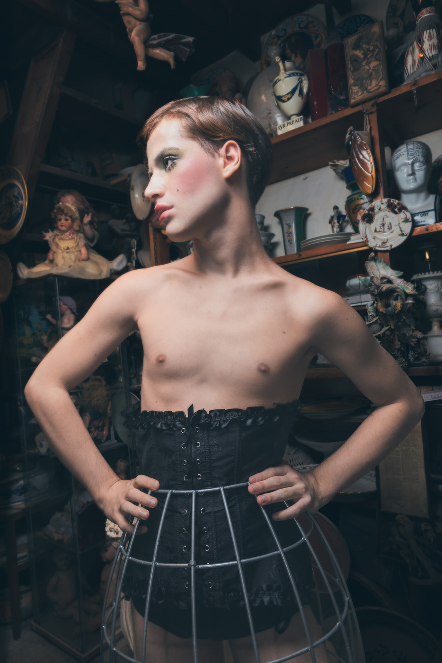 This project explores the fusion of fragility and strength, with people dressed as dolls in an environment reminiscent of the Dollhouse in Rome. The key visual elements – the cage, feathers, and corsets – symbolize restriction, vulnerability, and control, creating a contrast between beauty and confinement.”