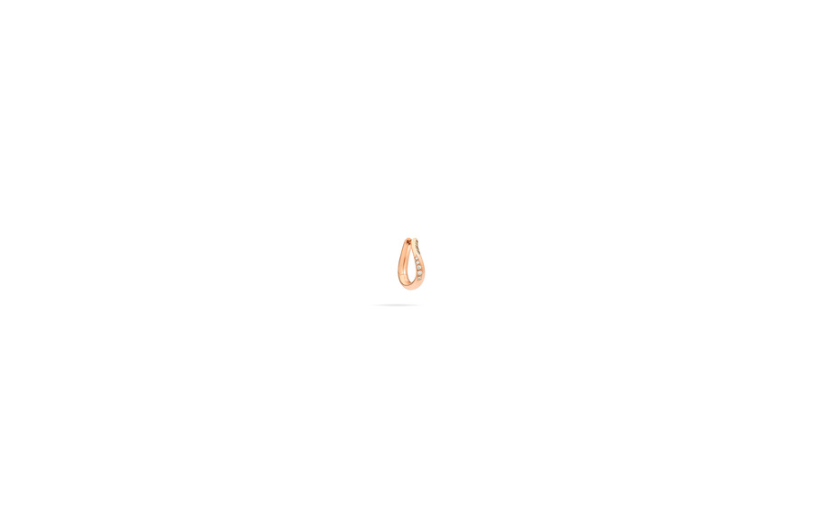 The 9-karat rose gold earrings with diamond pavé come in two styles. The “wave” shape wraps around the earlobe, whereas the slightly curved rose gold “J” shape can also be worn upside down by inserting the curved part into the pinna. Two perfect options for trendy “ear parties.”