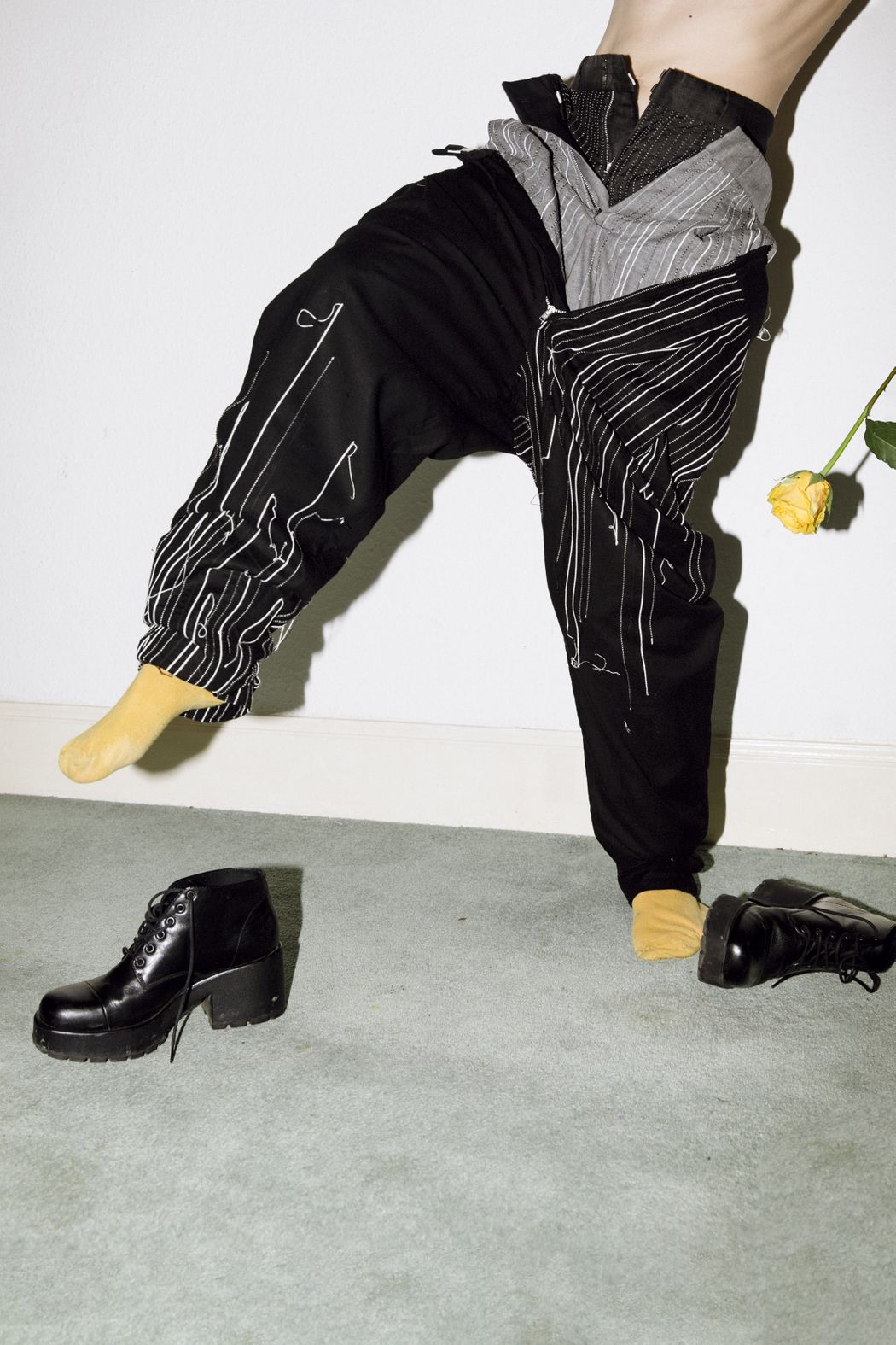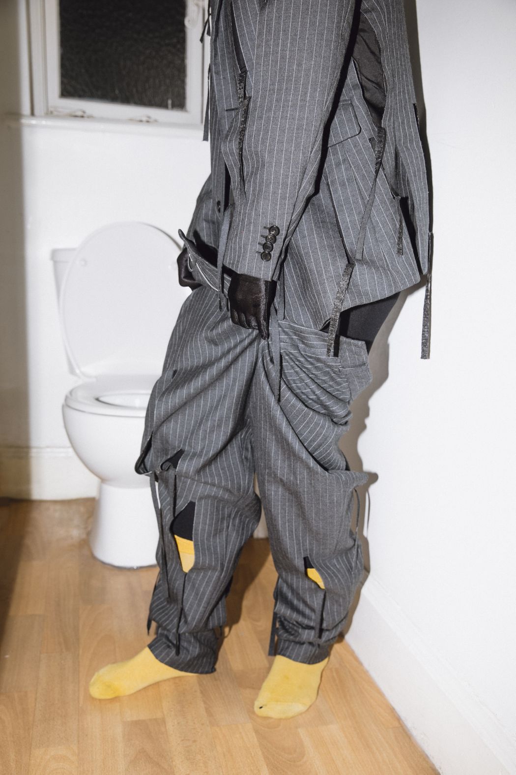 We are a unisex label reimagining tailoring, launched in Selfridges last November and together with a photographer Barbora Mrazkova we’ve created a photo series capturing the mood of what a year of restrictions felt like and it also opens up the question of identity and gender.