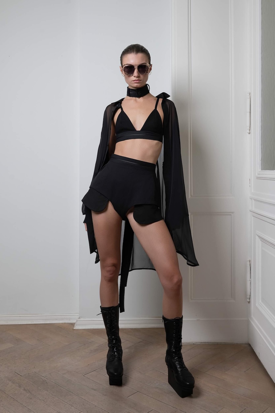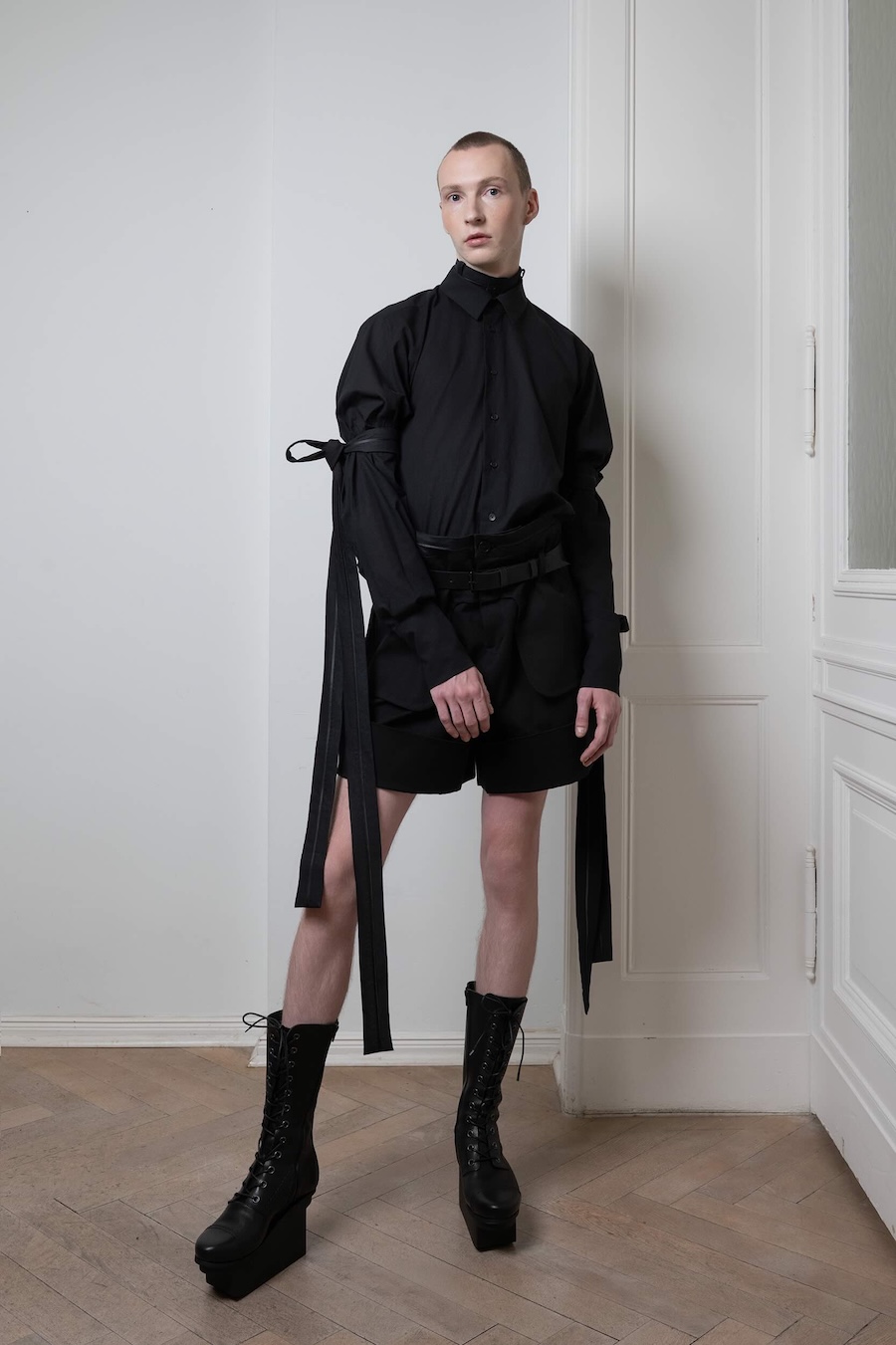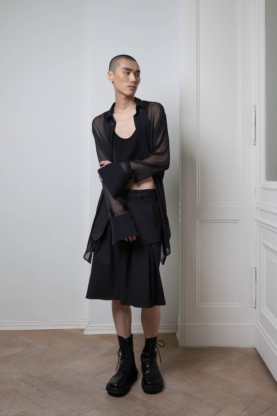 Drawing from a profound five-year artistic evolution, BLACK TAILORED SUMMER marks a pivotal transition from audacious statement pieces toward a refined approach in gender-neutral tailoring. With roots in heritage menswear, each creation pays homage to individuality while collaborating seamlessly with everyday wearability. Perbandt’s signature monochrome palette persists, now executed with a precision that elevates mundane luxury.