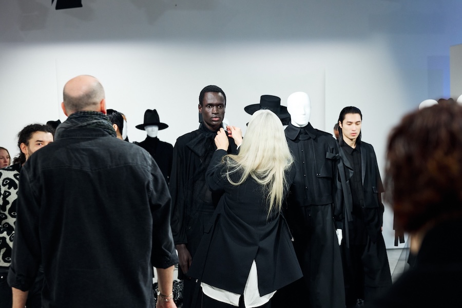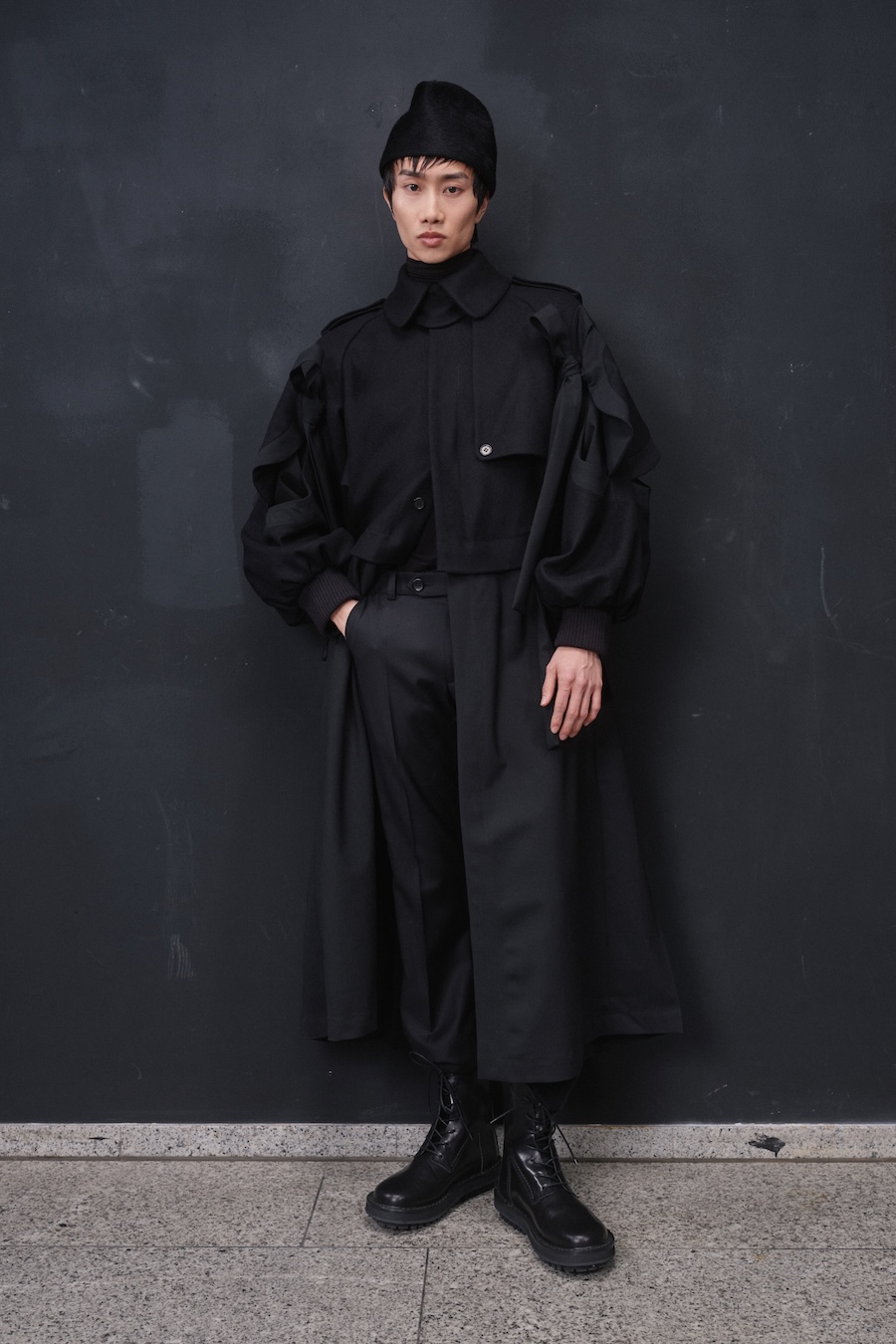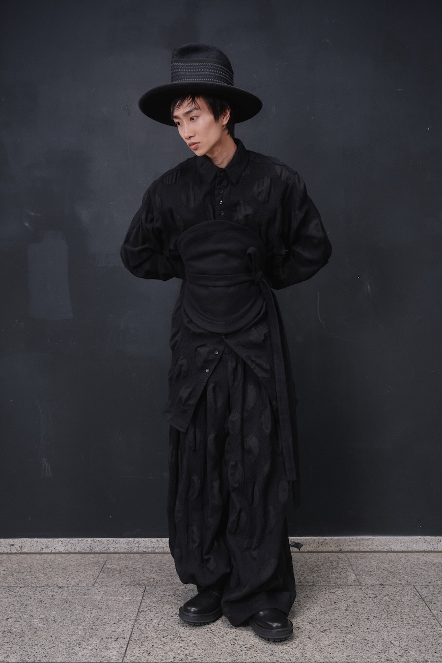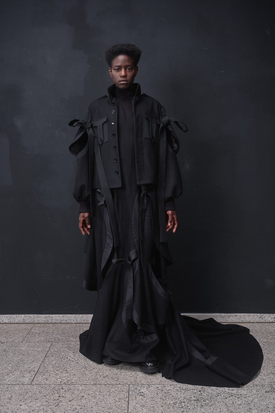 In an installation, guests were invited to unleash their artistry, painting a striking wall with black paint, all while models adorned in Perbandt’s iconic designs posed gracefully amidst an enchanting sea of black balloons. “Zero Point Energy” embodies a state of minimal yet inexhaustible energy, suggesting that even in perfect stillness, a subtle yet powerful vibration remains, resonating through every stitch of her collection.