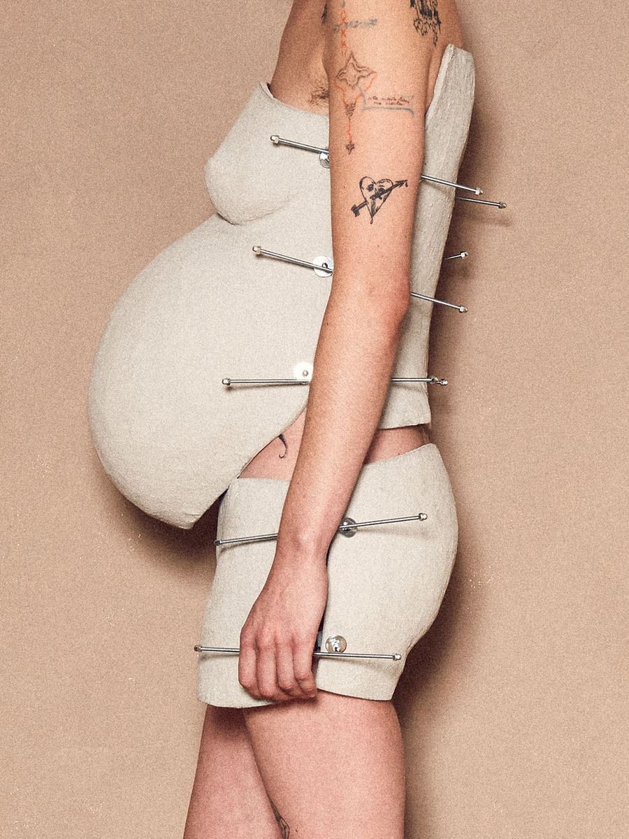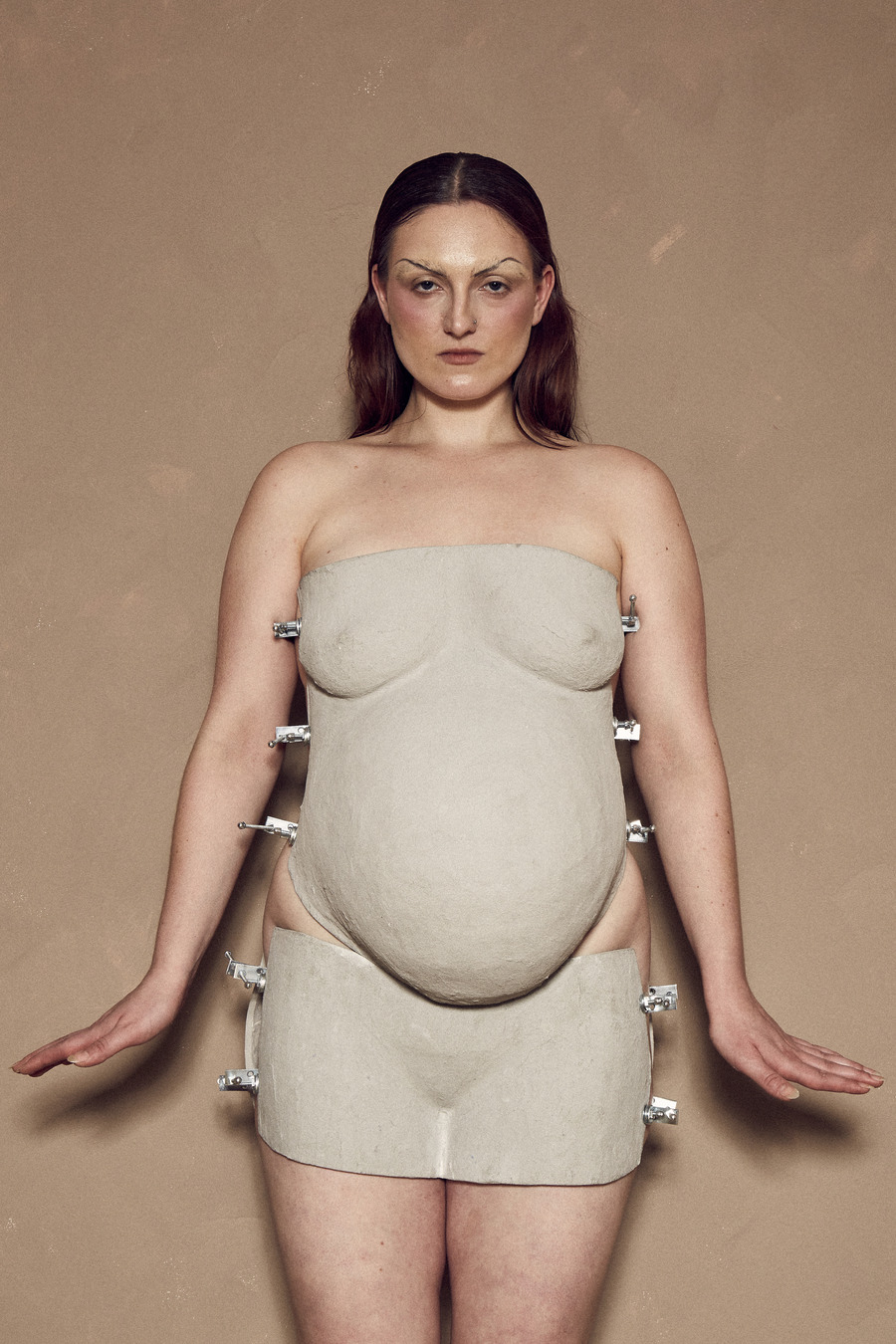 I did a “regressive design process” (meant to fit into the socio-political context of that time) and created a surgical pregnancy structure, to allow her to shock her audience once again this time with her purer nature, this is because Grace was often not perceived as a woman, she did not behave on the expected female role.