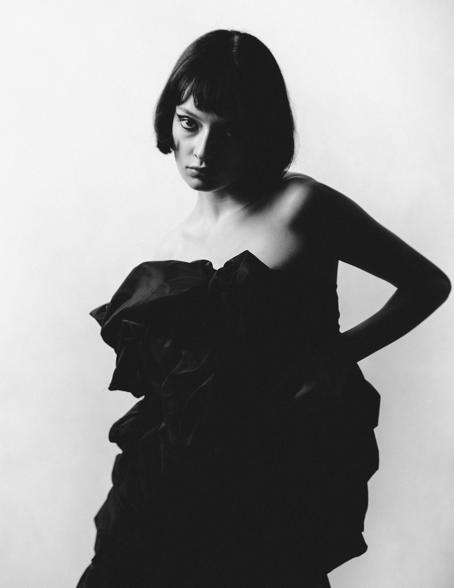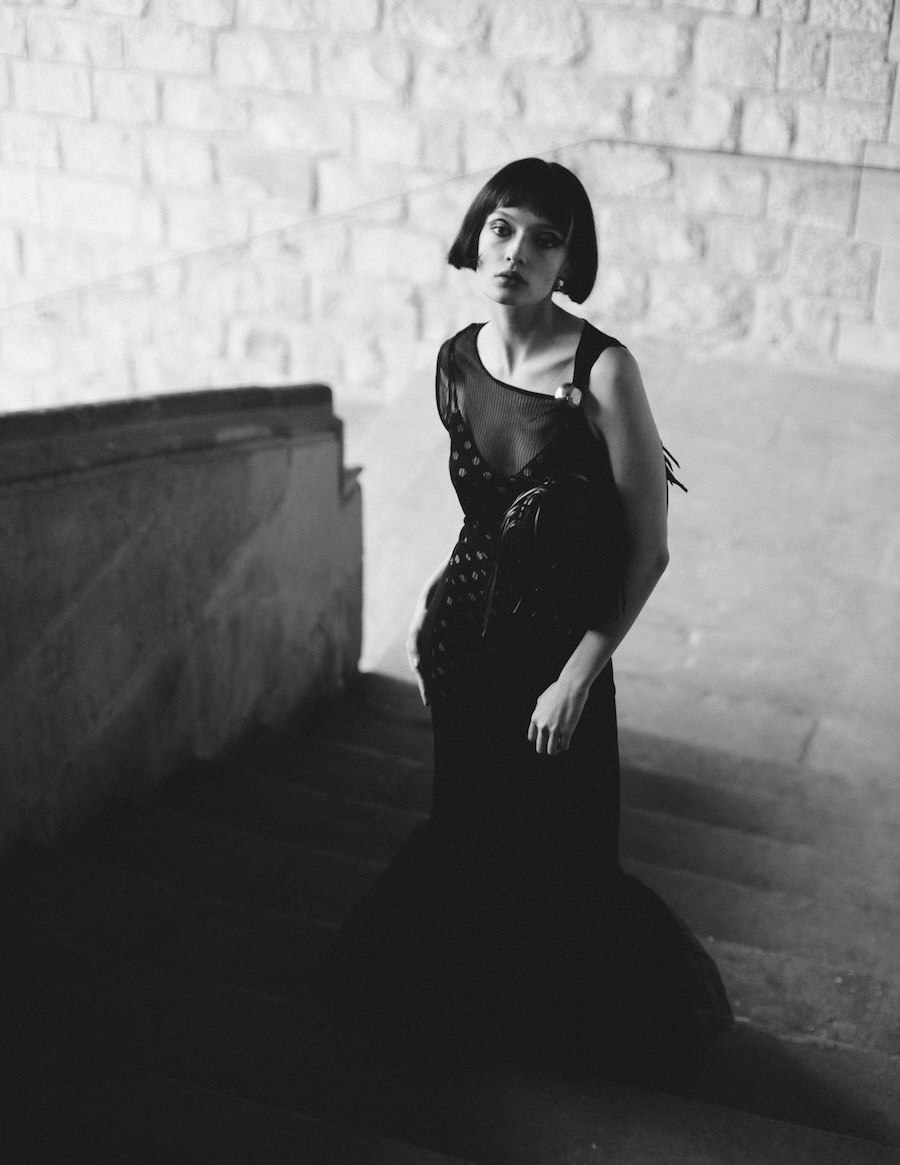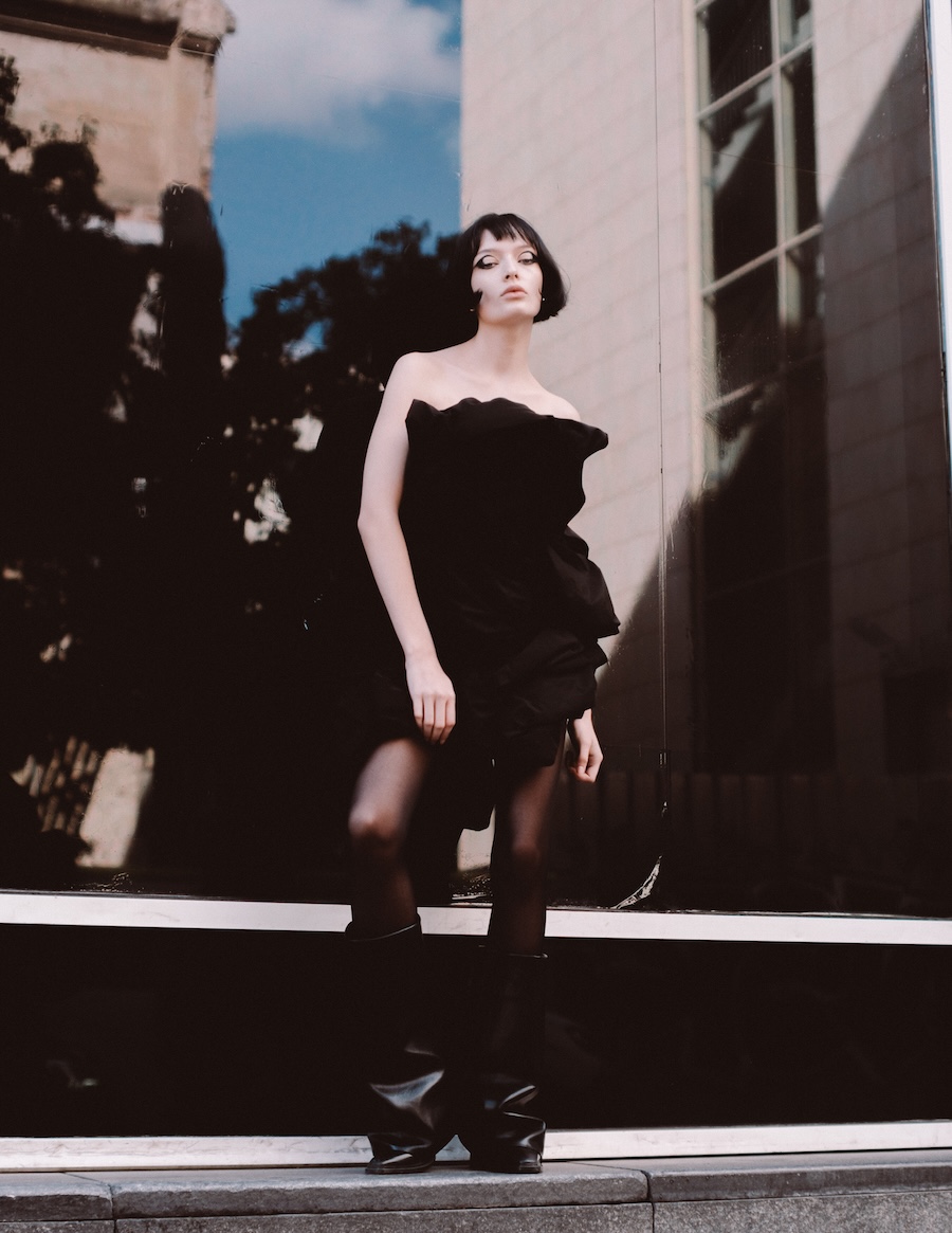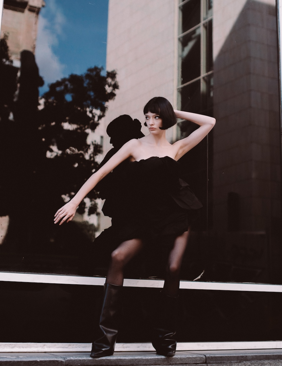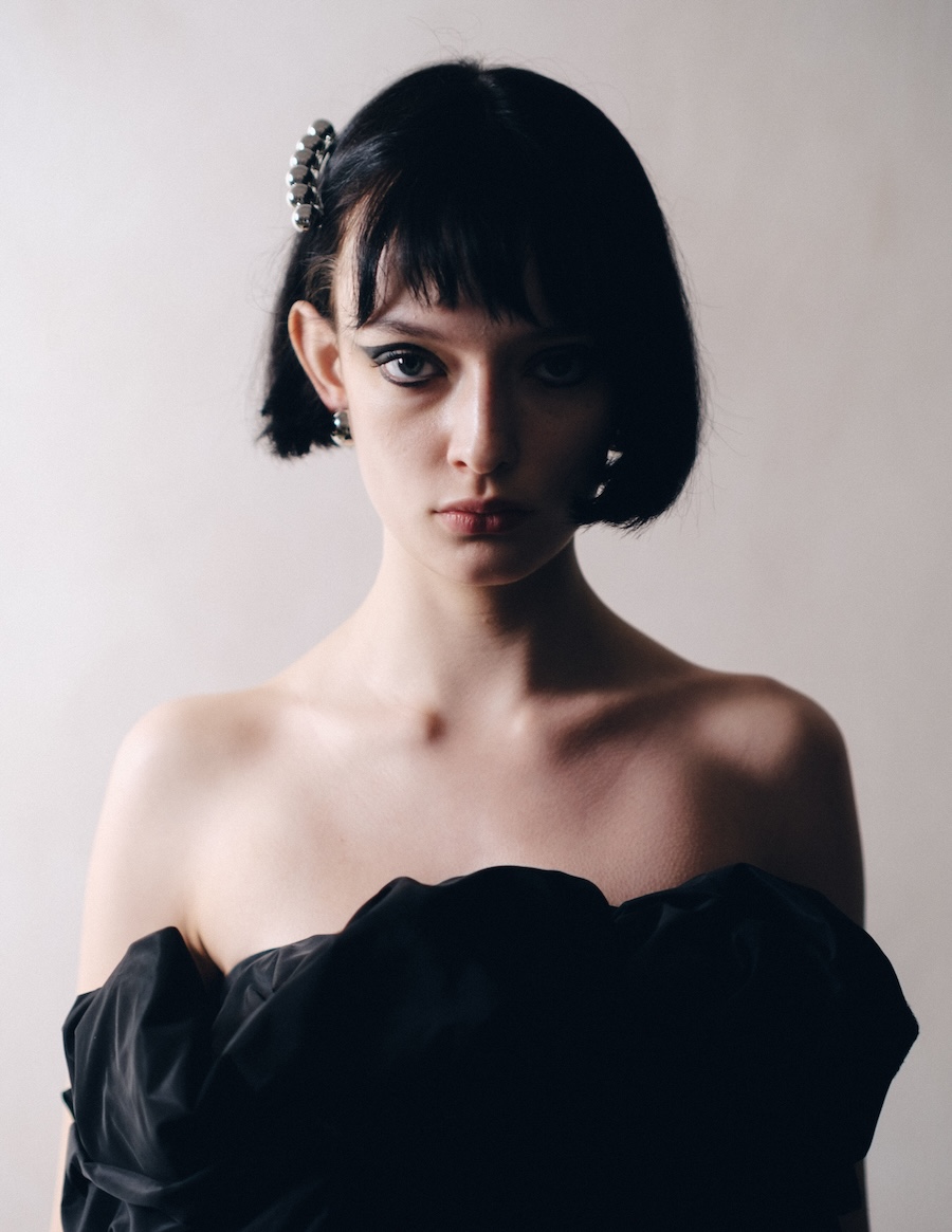 A KALTBLUT exclusive. Photography by Kimmo Halme. The model is Carmen Arenas from One Management. This editorial, titled “Ethereal Geometry,” explores the relationship between softness and structure, utilising garments that evoke a tactile delicacy while maintaining a visually architectural presence. Ornamental details and contrasting textures complement clean, minimalist silhouettes, conveying a message of controlled fragility, as if each piece were a sculptural work of art in motion.