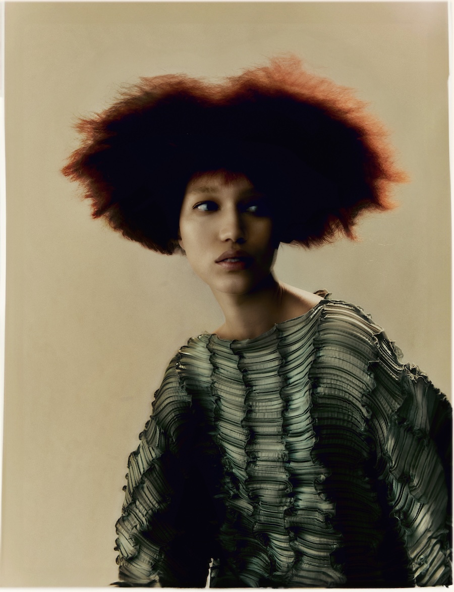 Gravity-defying hairstyles and avant-garde makeup turn faces into canvases, where shadows and light reshape identity. This editorial challenges rigid beauty norms, embracing transformation and artistic expression.