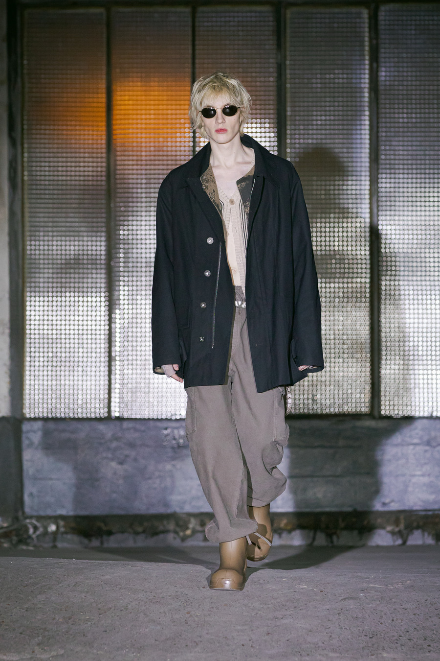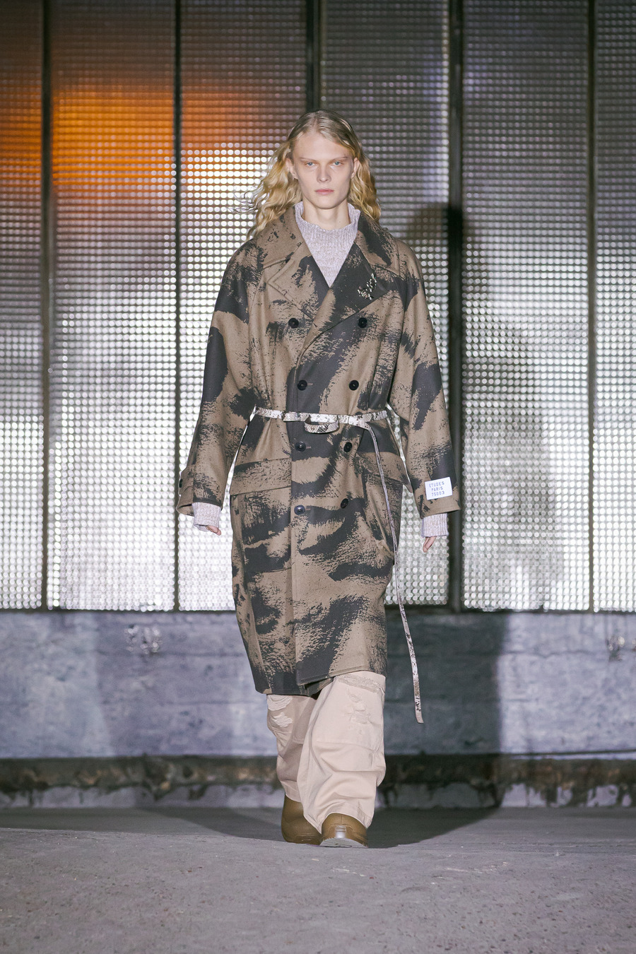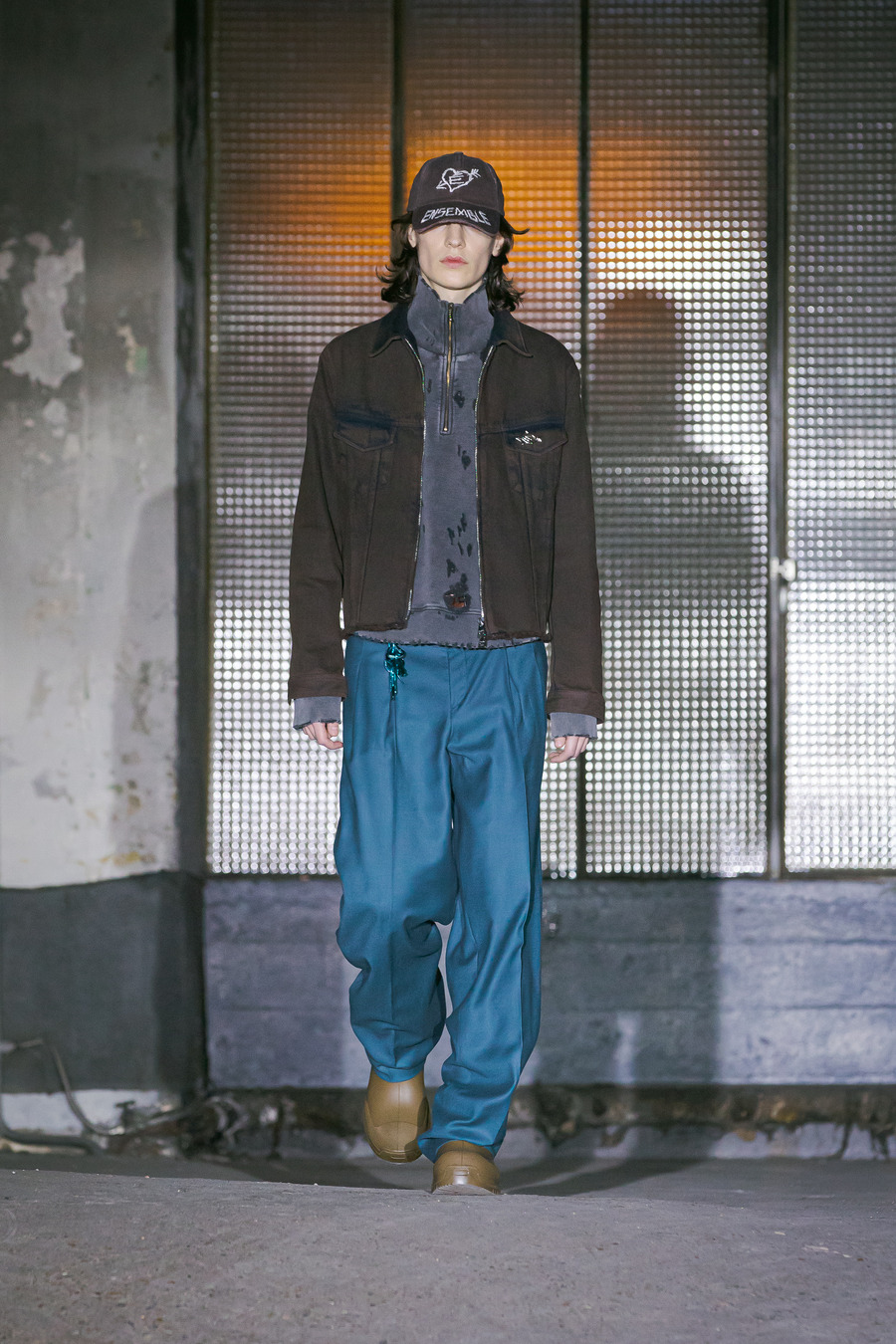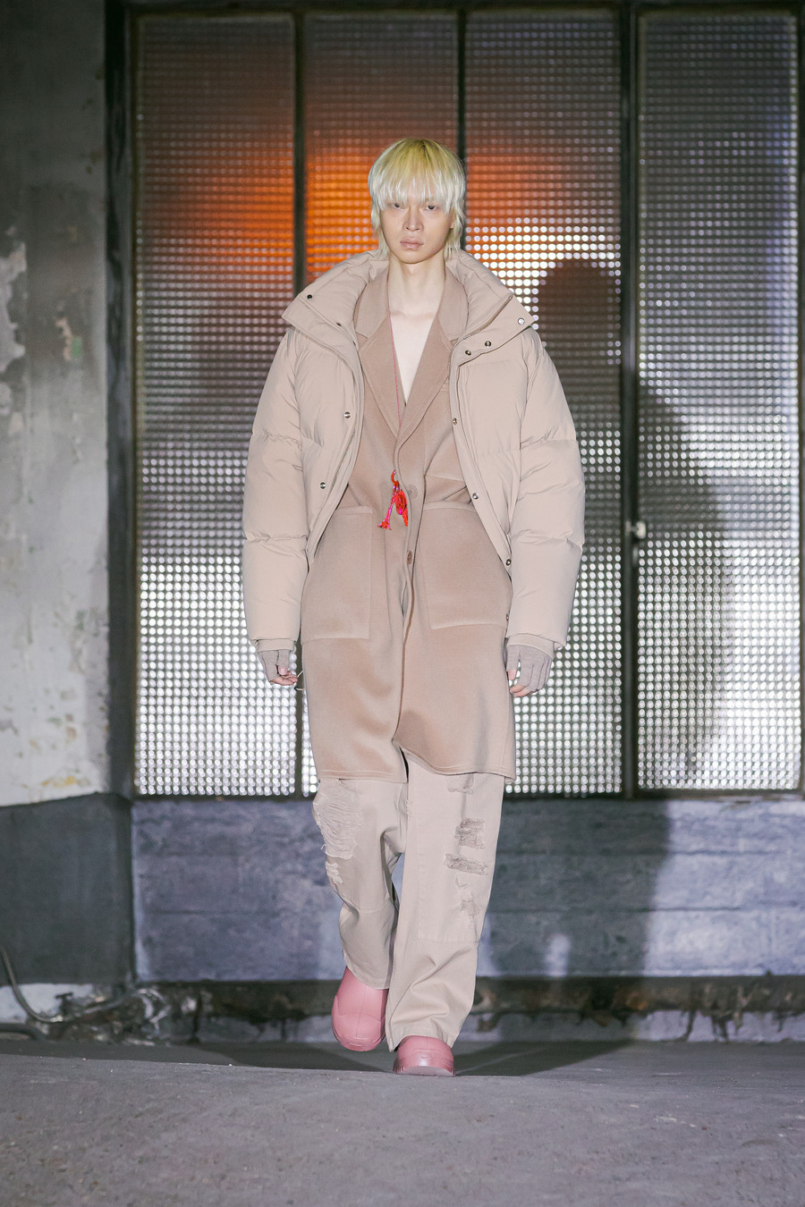 Manifesting in materiality, iconography and the bold proposition of an amplified silhouette, the season’s evolution of the Études vocabulary is fortified by a muted palette that grades through dusty rose and arctic blue to deep green, chocolate, mud, concrete, black and beige. Adopting the archetypes of the masculine wardrobe inextricably linked with city life, the collection is built on tonal harmonies; emboldened by hand and industrial processes from raw-edged tailoring to bleached and destroyed denim.