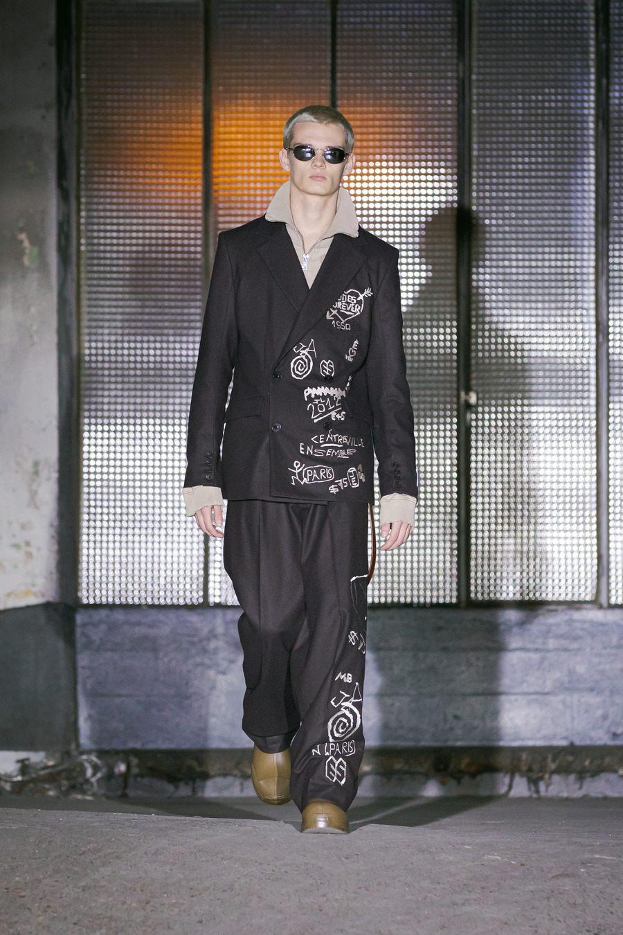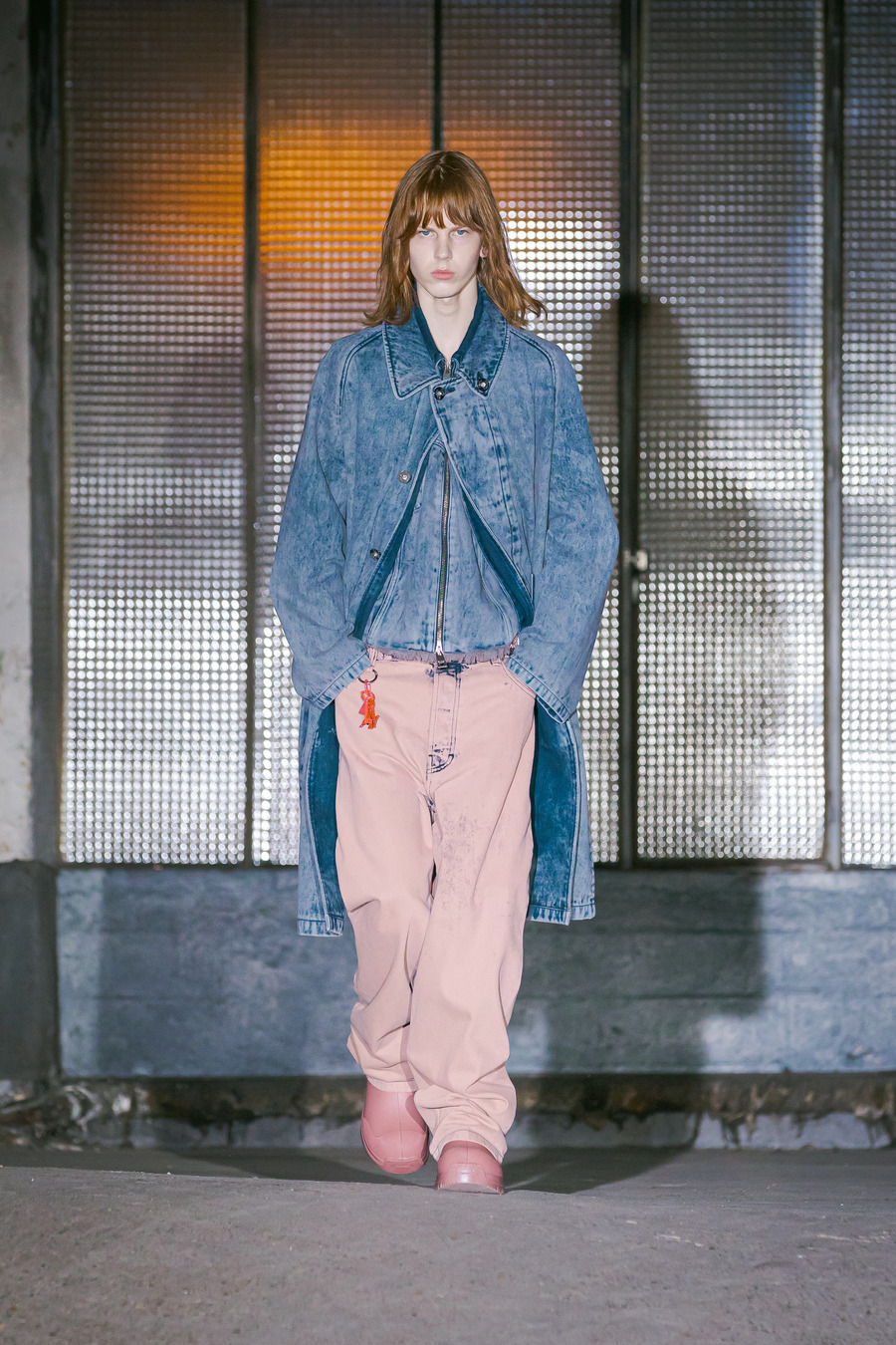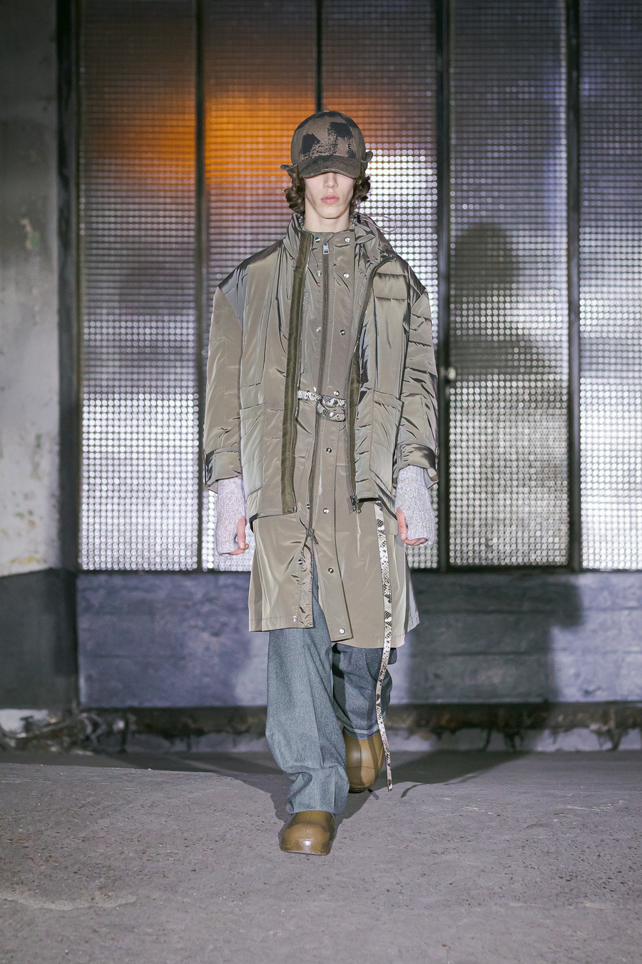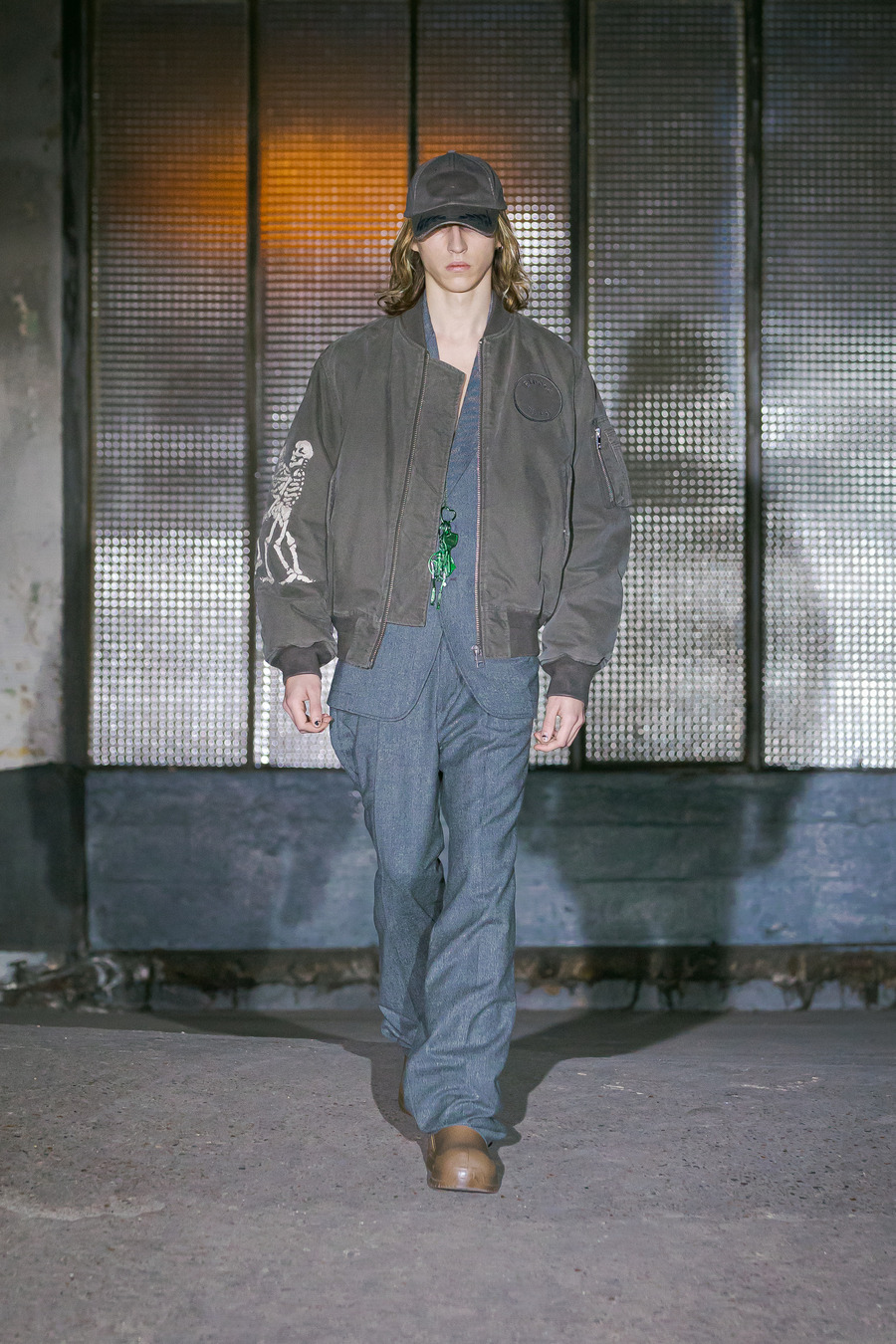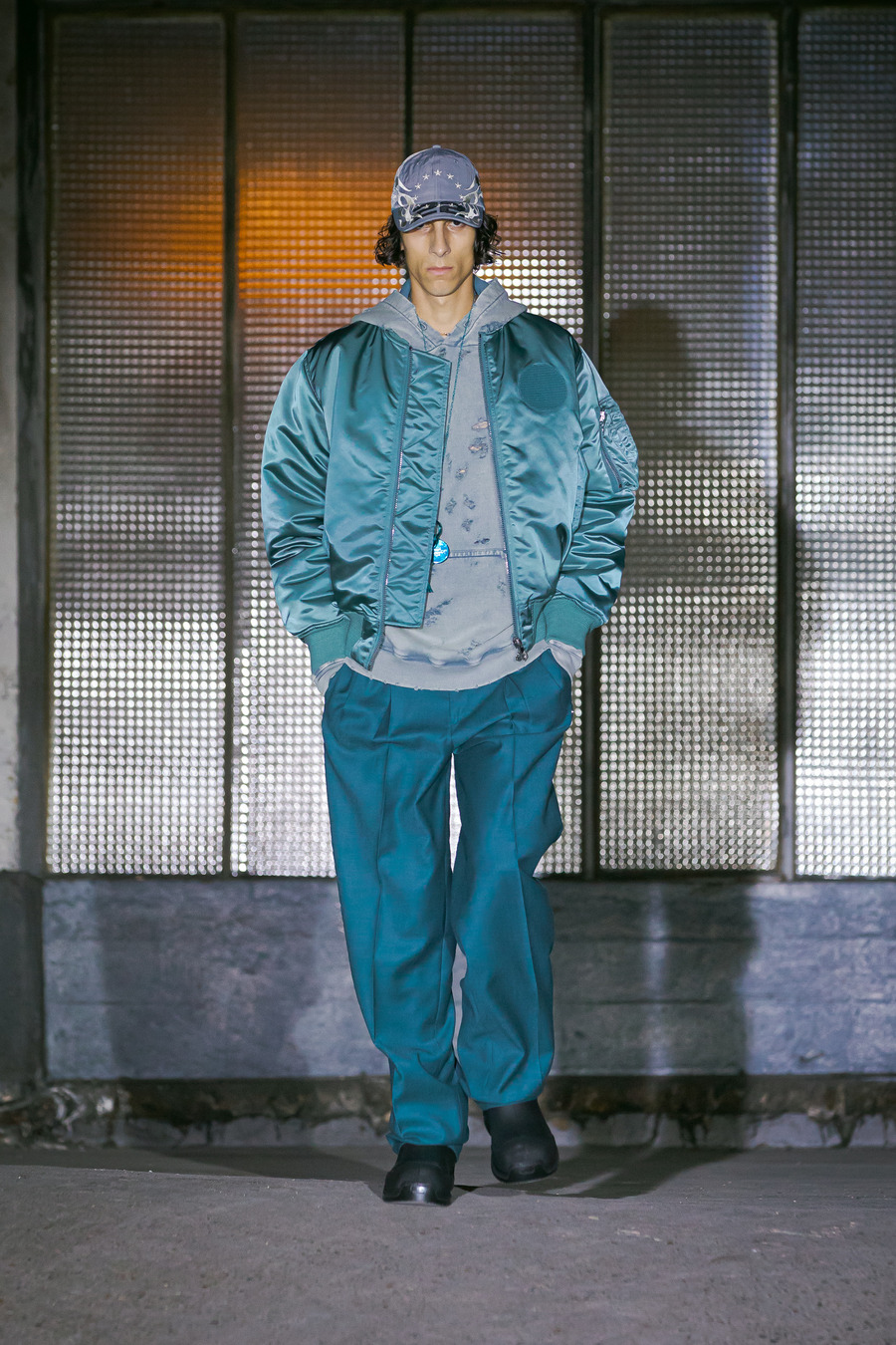 Manifesting in materiality, iconography and the bold proposition of an amplified silhouette, the season’s evolution of the Études vocabulary is fortified by a muted palette that grades through dusty rose and arctic blue to deep green, chocolate, mud, concrete, black and beige. Adopting the archetypes of the masculine wardrobe inextricably linked with city life, the collection is built on tonal harmonies; emboldened by hand and industrial processes from raw-edged tailoring to bleached and destroyed denim.