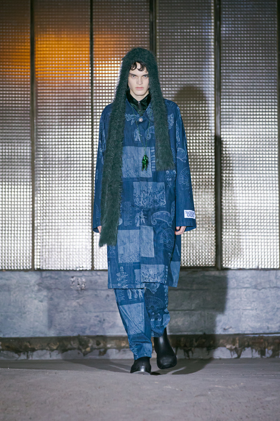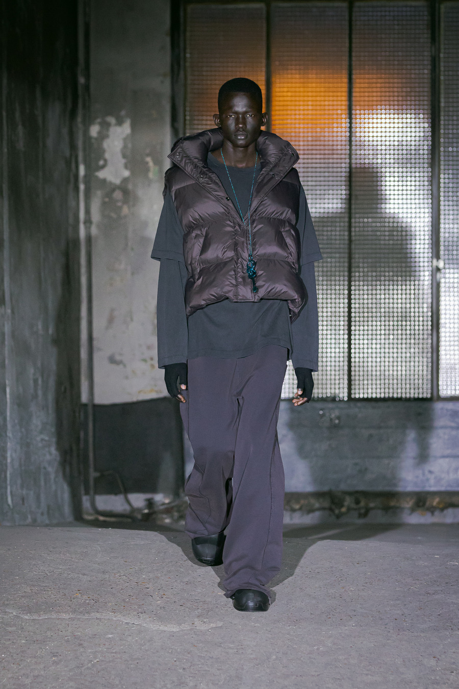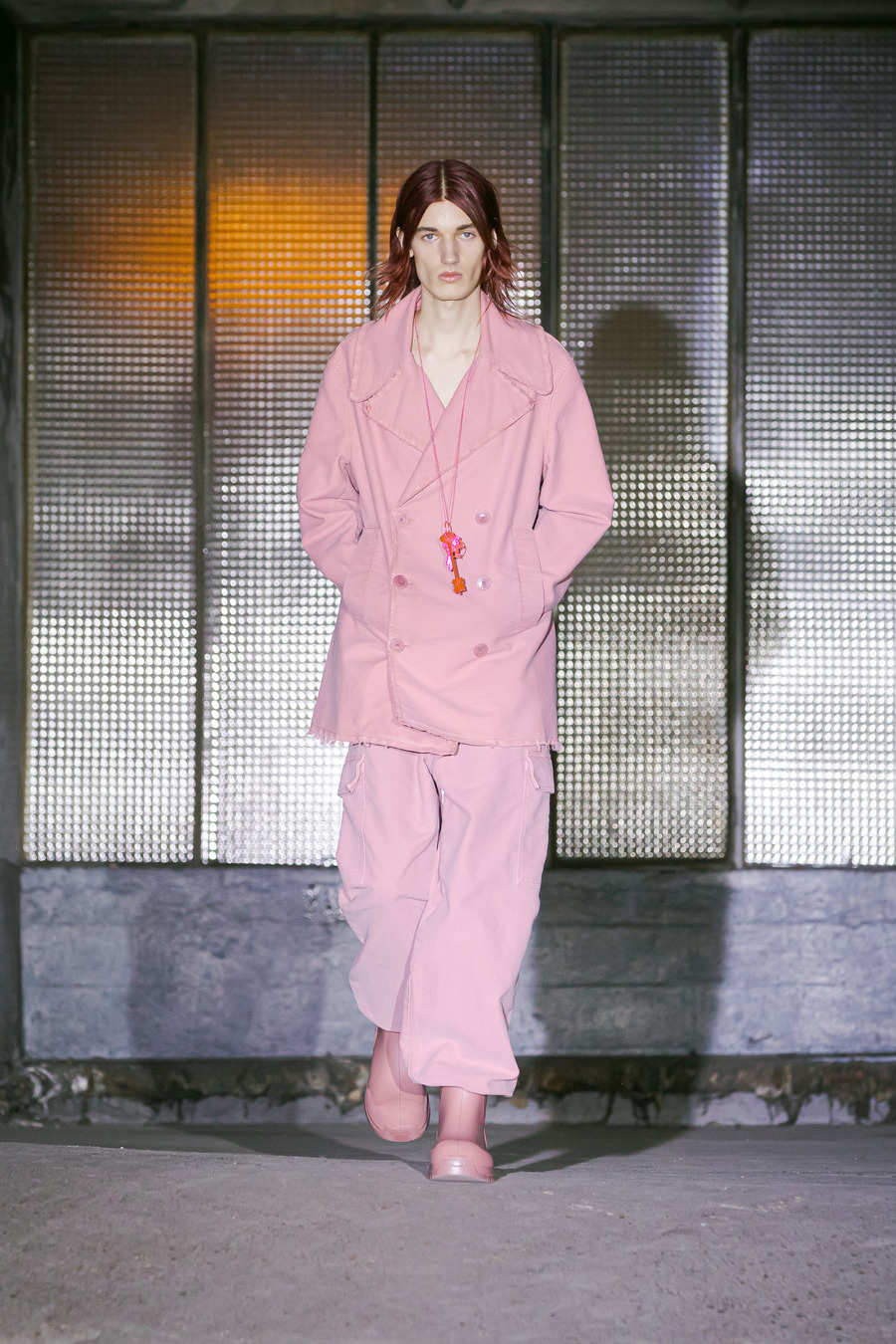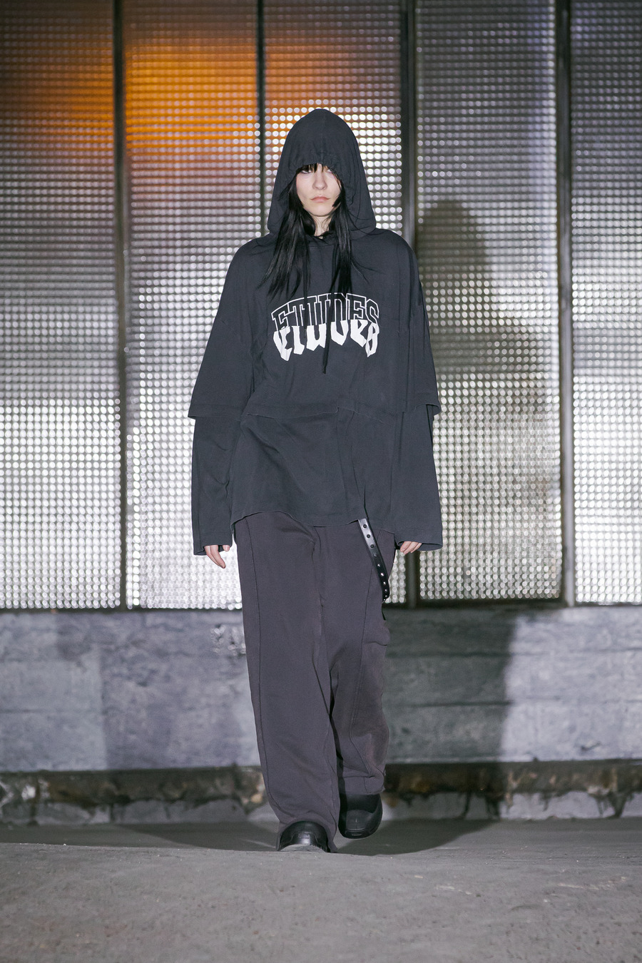 Manifesting in materiality, iconography and the bold proposition of an amplified silhouette, the season’s evolution of the Études vocabulary is fortified by a muted palette that grades through dusty rose and arctic blue to deep green, chocolate, mud, concrete, black and beige. Adopting the archetypes of the masculine wardrobe inextricably linked with city life, the collection is built on tonal harmonies; emboldened by hand and industrial processes from raw-edged tailoring to bleached and destroyed denim.